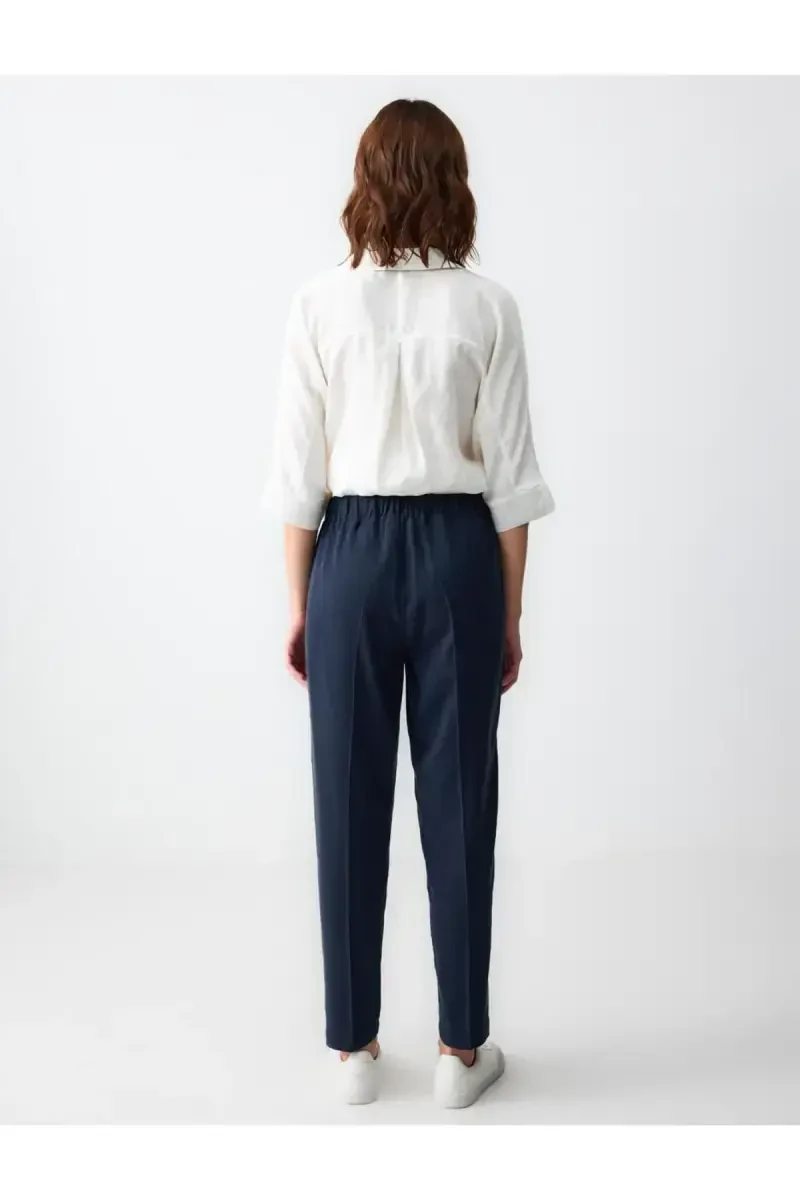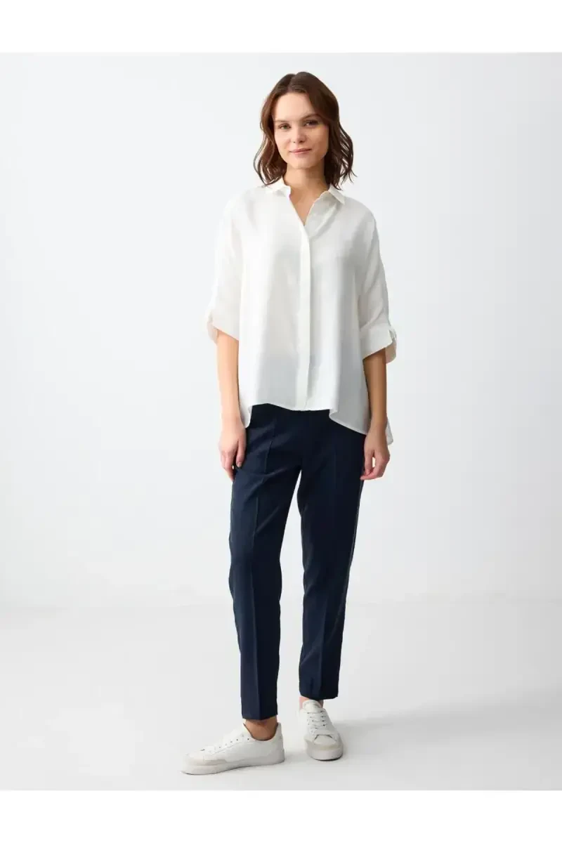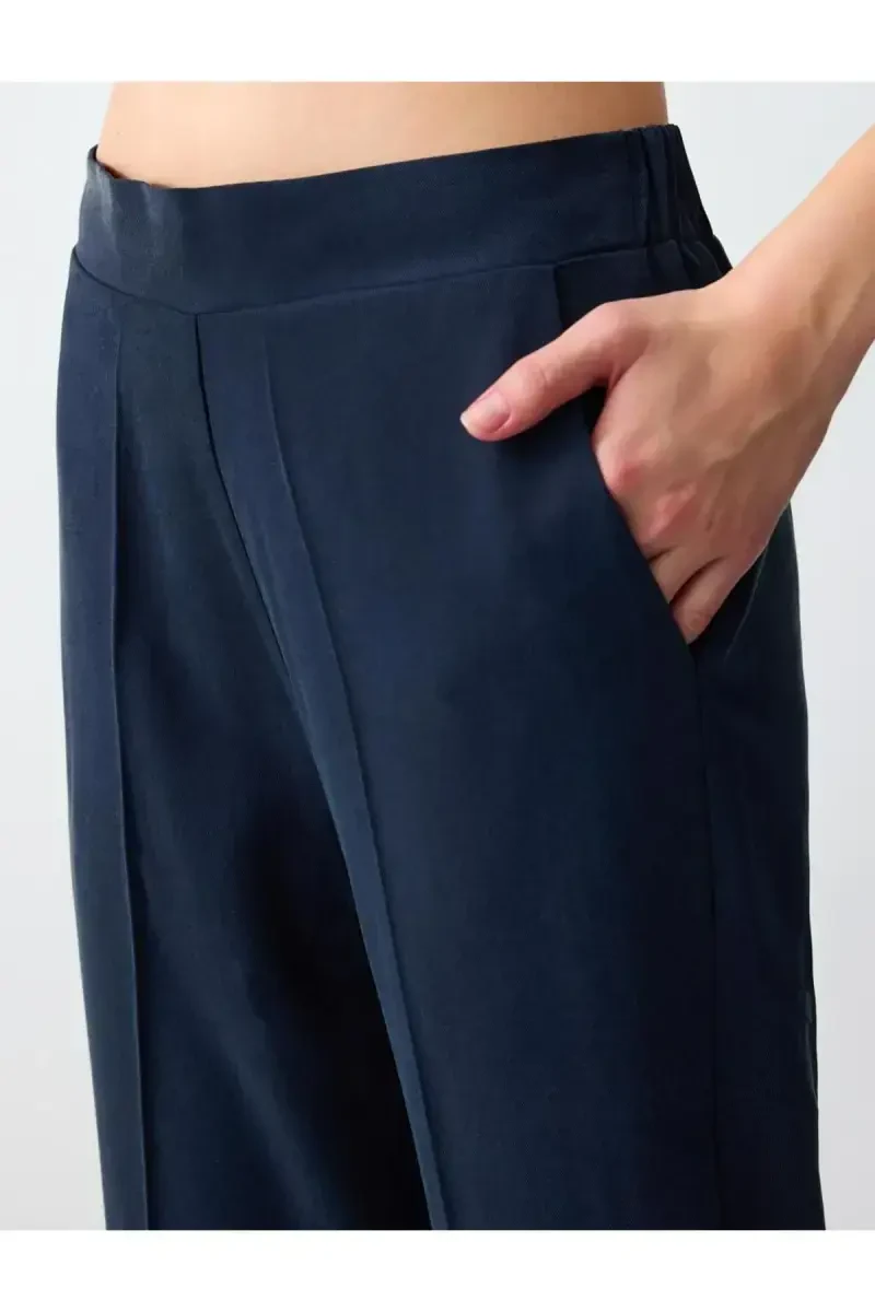 Şıklığın ve rahatlığın mükemmel birleşimi olan Lacivert Düz Kesim Yüksek Bel Normal Paça Dokuma Pantolon, gardırobunuzun vazgeçilmez parçalarından biri olmaya aday! Zamansız tasarımıyla her mevsim ve her ortamda rahatlıkla kullanabileceğiniz bu pantolon, yüksek bel kesimiyle belinizi ince gösterirken, normal paça boyu da modern bir görünüm sunar. Dayanıklı dokuma kumaşı sayesinde uzun süreli kullanım imkanı sunan pantolon, lacivert rengi ile de kombin yapma kolaylığı sağlar. İster şık bir bluz ve topuklu ayakkabılarla özel günlerde, ister basic bir tişört ve spor ayakkabılarla günlük hayatta kullanın, her zaman şık ve rahat hissedeceksiniz. Bu pantolon, şıklığı ve rahatlığı bir arada arayan modern kadınlar için ideal bir seçimdir. Yüksek kaliteli dokuma kumaştan üretilen pantolon, nefes alan yapısıyla gün boyu konfor sağlar. Ürünün düz kesimi ve normal paça boyu, her vücut tipine uyum sağlayarak kusursuz bir görünüm yaratır. Lacivert rengi, her türlü renk ve desenle kolayca kombinlenebilir, böylece gardırobunuzdaki diğer parçalarla uyum içinde kullanılabilir. Ofis şıklığından günlük rahatlığına kadar her stile uyum sağlayan bu pantolon, gardırobunuzun en çok tercih edilen parçalarından biri olacak. Jimmy Key kalitesi ve şıklığı ile tarzınıza sofistike bir dokunuş katın.