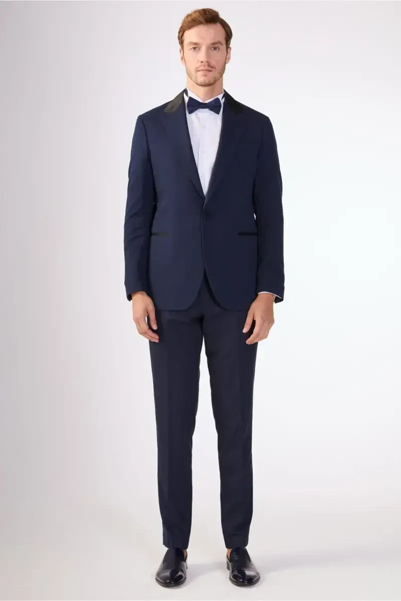 темно-синий костюм-смокинг, мужской смокинг, смокинг современного покроя, смокинг с подкладкой, однобортный смокинг, особые случаи, свадьба, помолвка, выпускной бал, вручение дипломов