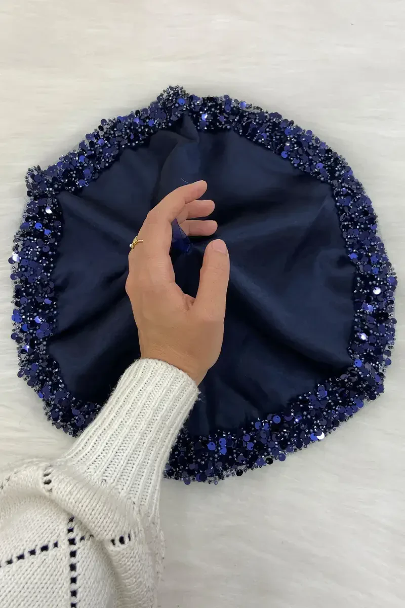 ZEYMERADE'nin özel tasarımı olan Lacivert Gelin Damat Mendili, düğün, nişan, kına, sünnet gibi özel günlerinizde ışıltısıyla fark yaratacak. Işıl ışıl pul detaylarıyla süslenmiş bu mendil, gelin ve damadın yanı sıra nedimeler ve halay başları için de mükemmel bir aksesuar. Saten kumaşın zarafetiyle birleşen kristal cam boncuk, inci ve pul işlemeleri, mendile benzersiz bir görünüm kazandırıyor. Lacivert rengin asaleti ve ışıltılı detayların göz kamaştırıcı etkisi, unutulmaz anılarınıza şıklık katacak. Bu özel mendil, sadece bir aksesuar değil, aynı zamanda sevginin ve birlikteliğin sembolü olacak. Düğün fotoğraflarınızda, halaylarınızda ve diğer özel anlarınızda zarafetinizi ön plana çıkaracak. Kaliteli malzeme ve özenli işçilik sayesinde uzun yıllar boyunca ilk günkü gibi kullanabilirsiniz. Özel günlerinizde size eşlik edecek bu şık mendil, aynı zamanda sevdiklerinize verebileceğiniz anlamlı bir hediye seçeneği. Işıl Işıl Pul Detaylı Düğün Halay Nedime Söz Nişan Kına Sünnet Mendili ile özel anlarınızı taçlandırın. ZEYMERADE kalitesiyle üretilen bu mendil, şıklığı ve zarafeti bir araya getirerek unutulmaz bir deneyim sunuyor. Düğün hazırlıklarınızın vazgeçilmezi olacak bu özel mendili hemen sipariş verin ve ışıltınızla göz kamaştırın. Özel anlarınızı ölümsüzleştirmek ve zarafetinizi ön plana çıkarmak için ideal bir seçim. Lacivert rengin derinliği ve pul detaylarının ışıltısı, size ve sevdiklerinize unutulmaz bir deneyim yaşatacak. Bu mendil, sadece bir aksesuar değil, aynı zamanda özel günlerinizi anlamlandıran bir detay olacak. Her bir detayı özenle tasarlanmış bu mendil, zarafetin ve şıklığın simgesi haline gelecek.
