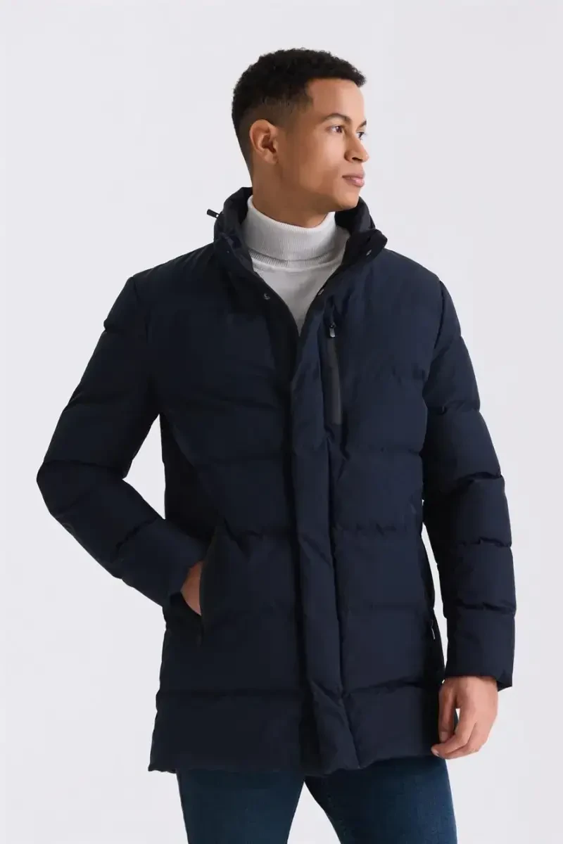 Lacivert mont, şişma mont, qishki mont, regular fit mont, hakim yaka mont, fermuarli mont, erkaklar monti, suvga chidamli mont, lacivert şişma mont, qishki erkaklar monti