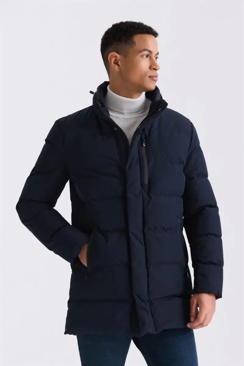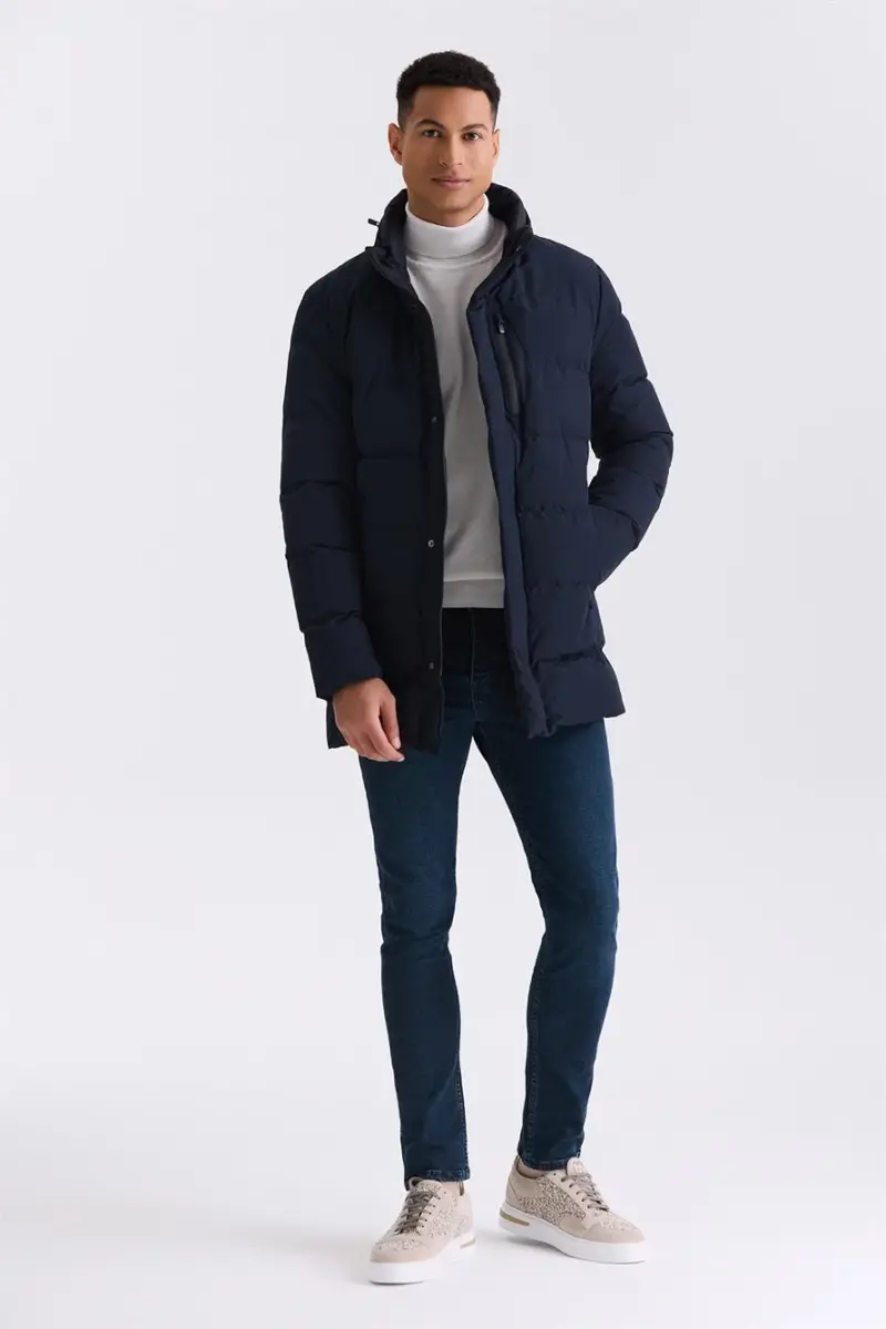 Lacivert Regular Fit Hakim Yaka Fermuarlı Kışlık Şişme Mont
