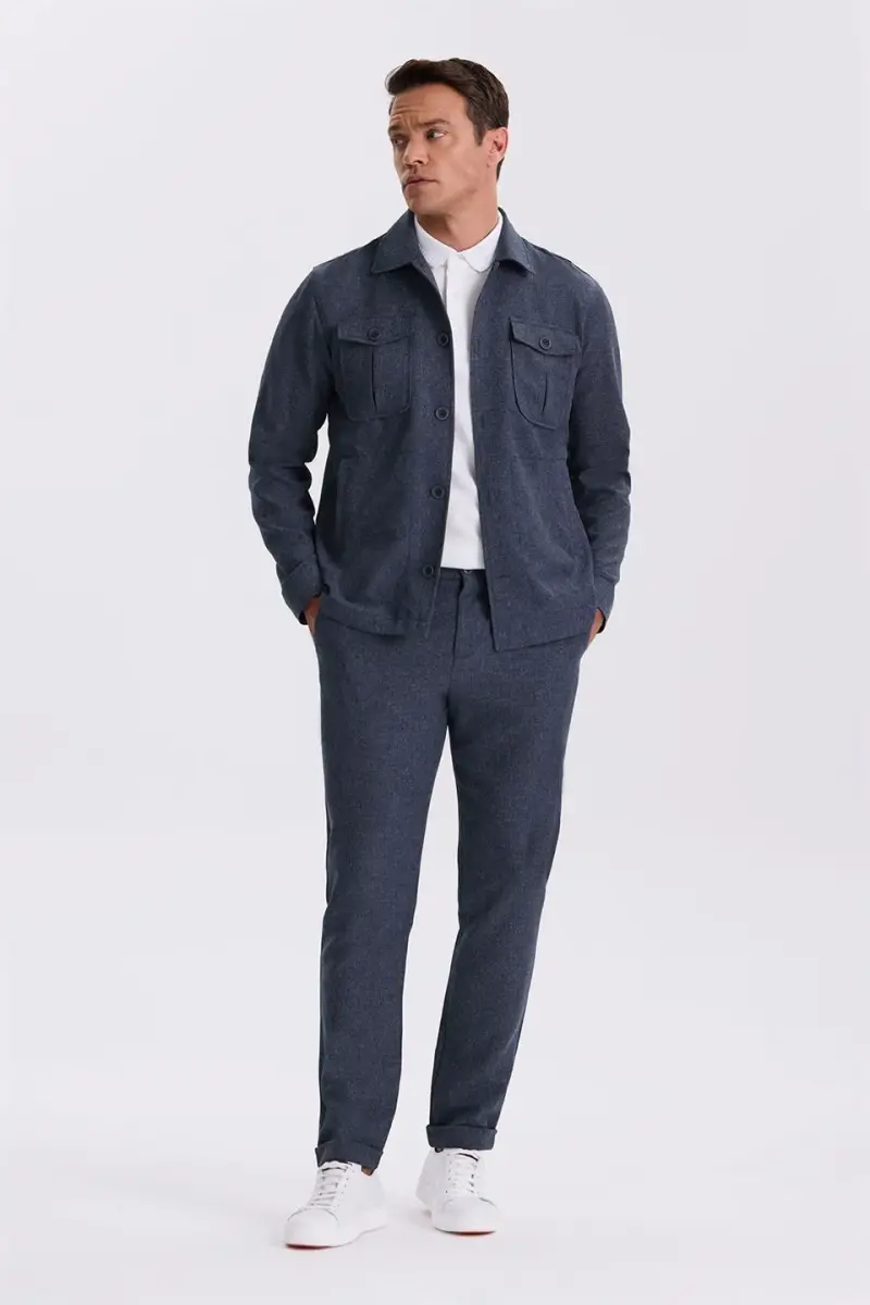 Lacivert Slim Fit Bebe Yaka Cepli Spor Takım Elbise