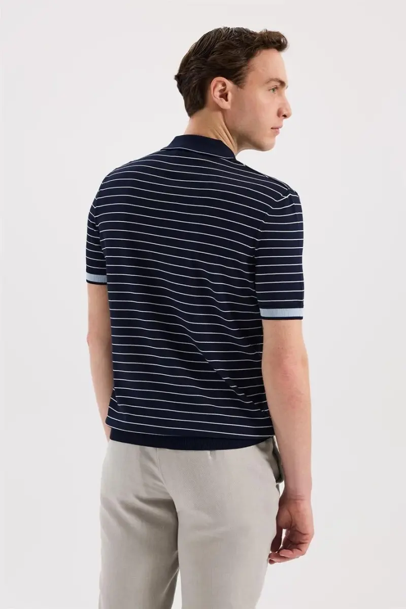 Lacivert Slim Fit Çizgili Rayon Polo Yaka T-Shirt