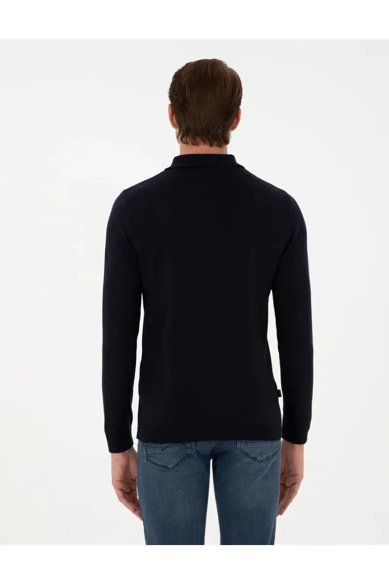 Lacivert Slim Fit Polo Yaka Basic Triko Kazak 50296623-VR033-Lacivert