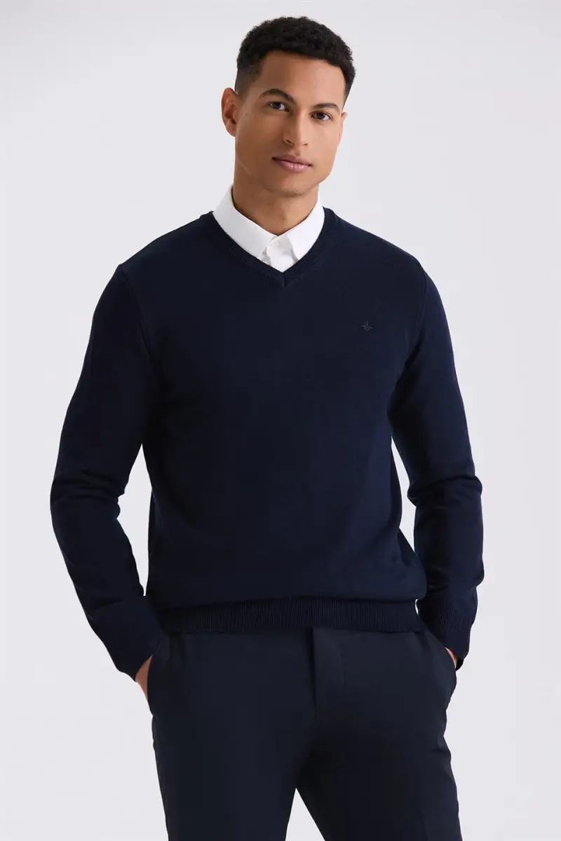 Lacivert Slim Fit V Yaka Triko Kazak