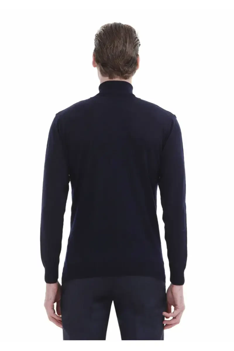 Тёмно-синий шерстяной свитер с высоким воротом | 100% шерсть