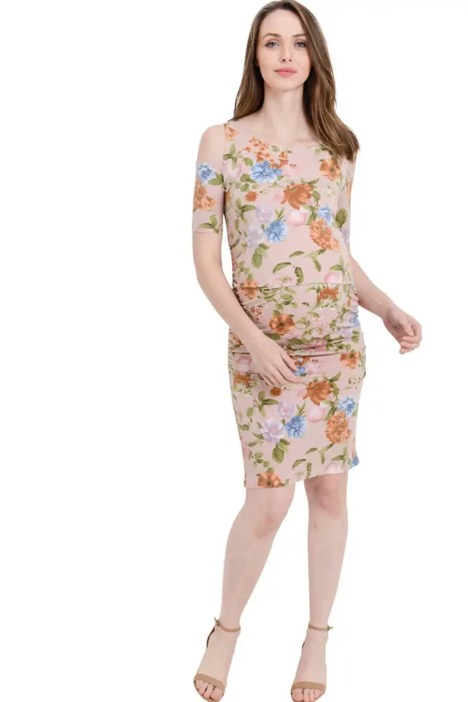 LaClef Maternity Midi Dress | Cold Shoulder Chic Design & Comfortable Fit | Maternity Clothing