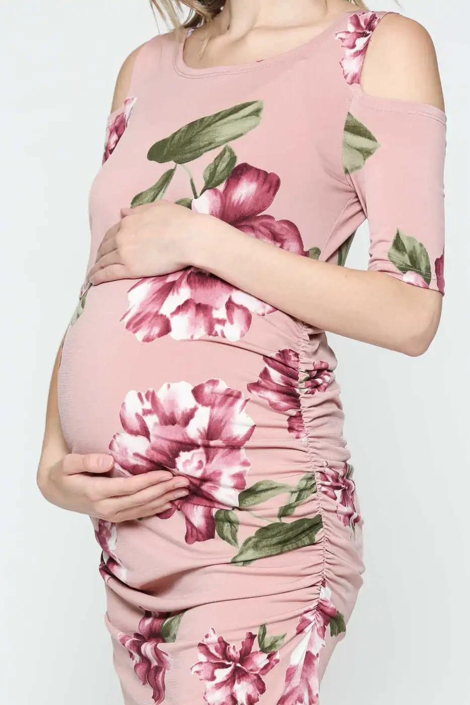 LaClef Women's Cold Shoulder Maternity Midi Dress