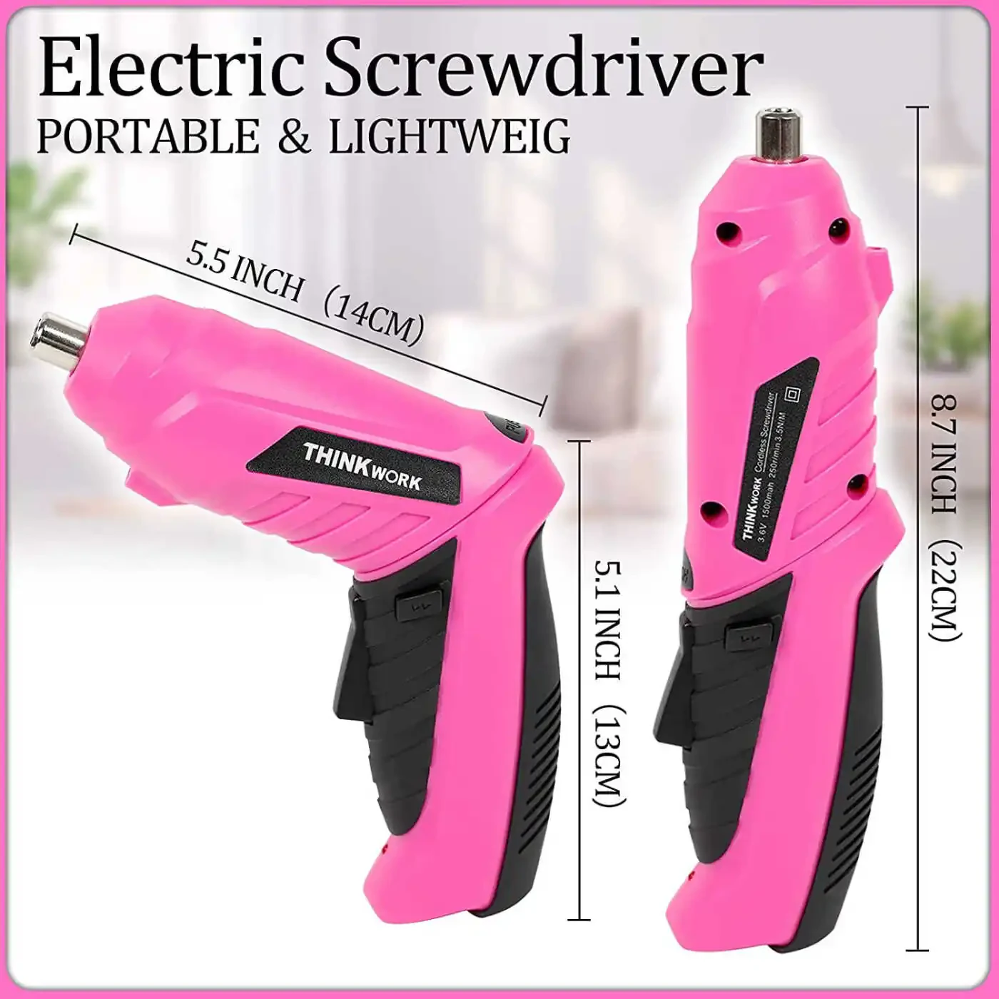 Make your home tasks easier with the Thinkwork TW6063 Ladies 40 Piece Pink Hand Tool Set! This specially designed pink tool set offers everything you need for home repairs and maintenance. Whether you're hanging a small picture or assembling furniture, you can handle your tasks professionally and enjoyably with this set. The included electric screwdriver, with its various bits and extension bar, makes any screwing job easy. Basic hand tools such as non-slip pliers, measuring tape, hammer, scissors, and utility knife will assist you in daily use. Made of corrosion-resistant materials, these tools are designed to be used safely for many years. The round carrying case allows you to store and transport your tools in an organized manner. With its pink color and stylish design, this tool set is a perfect gift option, especially for women who love crafts. It's an ideal choice to make your loved ones happy on special occasions such as birthdays, Easter, congratulations, Christmas, or graduation. With Thinkwork TW6063, home tasks are now more enjoyable and easy! The electric screwdriver is rechargeable via USB cable, so it's always ready for use. This 3.6V screwdriver has forward and reverse features and allows you to work comfortably even in dark areas thanks to the search light on it. The different sized bits and extension bar in the set cater to your various screwing needs. Most of the tools are made of CR-V steel and reinforced with chrome plating against corrosion, offering long-lasting and durable use. This set, which offers a wide range of use in your home DIY projects and maintenance tasks, can be stored safely and cleanly and easily transported thanks to its round bag. The Thinkwork TW6063 Ladies 40 Piece Pink Hand Tool Set is not only a practical tool set but also a stylish and useful gift option. It is the best way to make your loved ones happy with its pink color and useful content, especially appealing to women.