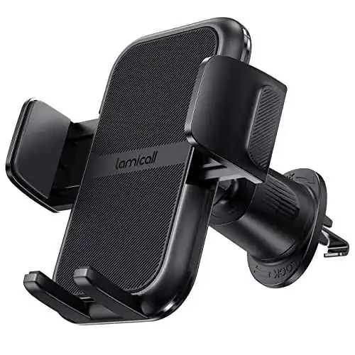 Improved Stability with 4-Lock Protection: The Lamicall holder for cell phone in vehicle features an innovative 4-lock protection and is compatible with both vertical and horizontal car air vents, ensuring excellent stability even during sharp turns or bumpy roads. Note: Hook extension range 10 mm-29 mm. The thickness of the vent blade is less than 4.2 mm. Not suitable for Round Vent. Thick Case Compatible: With upgraded arms which provide a wider grip and a fully adjustable foot, this phone mount for car vent clip is suitable for thicker cases, wallet cases or battery cases. The ultra-thick silicone back layer ensures a scratch-free experience for your device! Pretty-Design & High-Quality: The holder panel is made of soft silicone material which is anti-wear, effectively protecting the back of the phone. PC+ABS Material with better heat resistance, which is endurable for the extreme temperature of -4°F-194°F. 360-Degree Rotation: Unlike similar products on the market, this cell phone car holder gives you the best viewing angle no matter your needs, providing a 360-degree fully rotative design great for navigation, changing playlists, taking calls and more. Hassle-Free Installation: Say goodbye to complicated systems that take up your time and energy! Our cell phone automobile cradles are easy to install in a matter of seconds, requiring only 2 simple steps! Enhanced Compatibility: The Lamicall mobile holder for car was designed to fit any smartphone size ranging from 4.7” to 6.8”. Our air vent phone holder is compatible with iPhone 17/ iPhone 17 Pro/ iPhone 17 Pro Max/ iPhone 16/ Pro/ Max/ iPhone 15 / Pro/ Max/ iPhone 14/ Pro/ Max, Iphone 13/ Pro/ Max, Iphone 12/ Pro/ Max/ Mini, Iphone 11, X, XR, SE, 7, 6, S22, S21, S20, S10, Note 10 and more!
