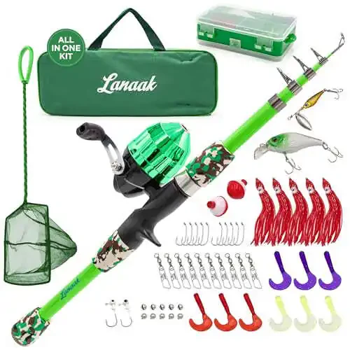 Çocuklarınızın açık havada eğlenmesini ve doğanın tadını çıkarmasını sağlamak için tasarlanmış, tam teşekküllü bir balıkçılık seti olan Lanaak Kids Balıkçılık Seti, küçük balıkçıların keşif yolculuğuna başlamaları için mükemmel bir hediye.