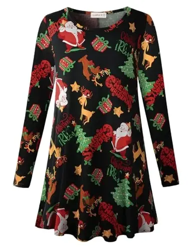 Revamp your wardrobe with LARACE Plus Size Tunic Tops! These long-sleeved shirts offer both comfort and style, making them a perfect match for your leggings. Feel comfortable all day long thanks to their soft texture and draped cut. LARACE combines quality and style in plus size women's clothing. These tunics are not only comfortable but also versatile. Suitable for both everyday wear and special occasions, these tunics ensure you always look stylish and well-groomed. Especially with their Christmas-themed designs, these tunics bring the holiday spirit to your wardrobe. With its round neck and "A" line skirt, it gently shapes your body lines and is a comfortable option that you can easily use during pregnancy. The flexible structure of the fabric does not restrict your freedom of movement. You can reflect your style with different color and pattern options of LARACE tunics. Whether you prefer vibrant colors or classic patterns, there is definitely an option for every taste. These tunics not only look good, but are also long-lasting. Thanks to its quality fabric, it stays like the first day for a long time. It is ideal for wearing alone in spring and autumn months, and for layering in winter months. You can easily wear it in any environment, whether in the office, at school, meeting with friends or relaxing at home. LARACE Plus Size Tunic Tops will be an indispensable part of your wardrobe. Discover these tunics now to feel special and beautiful!