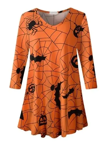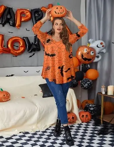 LARACE Tuniklar, 3/4 kollu, büyük beden, kadınlar için V yaka, bol kesim, dökümlü, taytlarla giyilebilen bluzlar ile tarzınızı tamamlayın. Bu özel tasarım tunikler, konfor ve şıklığı bir arada sunarak gardırobunuzun vazgeçilmezi olacak. %10 Spandex içeriği sayesinde esnek ve rahat bir kullanım sunan bu bluzlar, gün boyu hareket özgürlüğünüzü kısıtlamaz. Yumuşak dokusu teninize nazikçe dokunur, hafif yapısı ise sıcak havalarda bile serin kalmanızı sağlar. Kadınlar için tasarlanmış bu tunikler, ince olmamasına rağmen iç göstermez, böylece her ortamda güvenle giyebilirsiniz. Defalarca yıkamadan sonra bile çekme, tüylenme veya renk solması gibi sorunlarla karşılaşmazsınız. LARACE'nin büyük beden kadınlar için tasarladığı bu tunikler, özellikle karın ve kalça bölgesini gizlemek isteyenler için idealdir. Bol kesimi ve uzun etek ucu sayesinde vücut hatlarınızı kusursuz bir şekilde dengeleyerek daha zarif bir görünüm elde etmenizi sağlar. Aynı zamanda hamile giyim olarak da tercih edebileceğiniz bu tunikler, rahatlığı ve şıklığı bir arada sunar. V yaka tasarımı, boynunuzu daha uzun ve zarif gösterirken, dökümlü etek ucu ve özel baskılarıyla dikkat çekici bir tarz yaratmanıza yardımcı olur. Klasik, günlük ve çok yönlü bir parça olan bu tunikler, farklı kombinlerle kolayca uyum sağlar. İster taytlarla, ister pantolonlarla, ister eteklerle kombinleyerek farklı stiller yaratabilirsiniz. Cadılar Bayramı temalı baskılarıyla da öne çıkan bu tunikler, özel günlerde ve partilerde fark yaratmanızı sağlar. Günlük kullanımın yanı sıra, randevular, partiler, seyahatler, ev, ofis, tatil, plaj ve hamilelik gibi farklı durumlar için de uygundur. Gardırobunuzda mutlaka bulunması gereken, 3/4 kollu, büyük beden, rahat ve şık bir bluzdur.