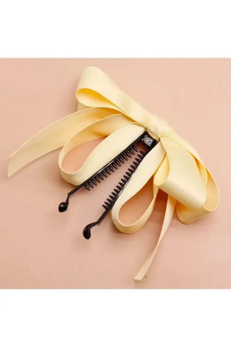 Big bow banana clip, yellow color.Product DescriptionWant to achieve a stylish and fun look while putting your hair up? Then the Big Bow Banana Clip - Yellow is just for you! This eye-catching yellow clip adds vibrancy to your hair, while the large bow detail highlights your style. Whether for everyday use or a special occasion, this clip will complete your hairstyle and draw attention. Made of high-quality material, this clip offers long-lasting use and gently grips your hair, keeping it in place all day long. The bow detail can instantly transform an ordinary ponytail or bun into a stylish look. It is an ideal choice for those who want to be both comfortable and stylish while putting their hair up. Start the day positively with the energy of yellow and let your style speak with the Big Bow Banana Clip! What are you waiting for to add movement to your hair and reflect your style? This clip is not just an accessory, but also an expression of your personality. Remember, small details make big differences! This banana clip, which adapts to every style, is a candidate to be an indispensable part of your wardrobe. It is a perfect option for both yourself and your loved ones as a gift. With this clip that offers elegance and usability together, your hair will always look well-groomed and stylish. It allows you to practically put your hair up in the daily rush, while completing your elegance in special moments. Shine with your best self at all times with the Big Bow Banana Clip - Yellow!Product Features* Large size design* Eye-catching yellow color* Stylish bow detail* High quality material* Long lasting useAdditional InformationSuitable for all hair types. Easy to put on and take off. Ideal for daily use and special occasions.