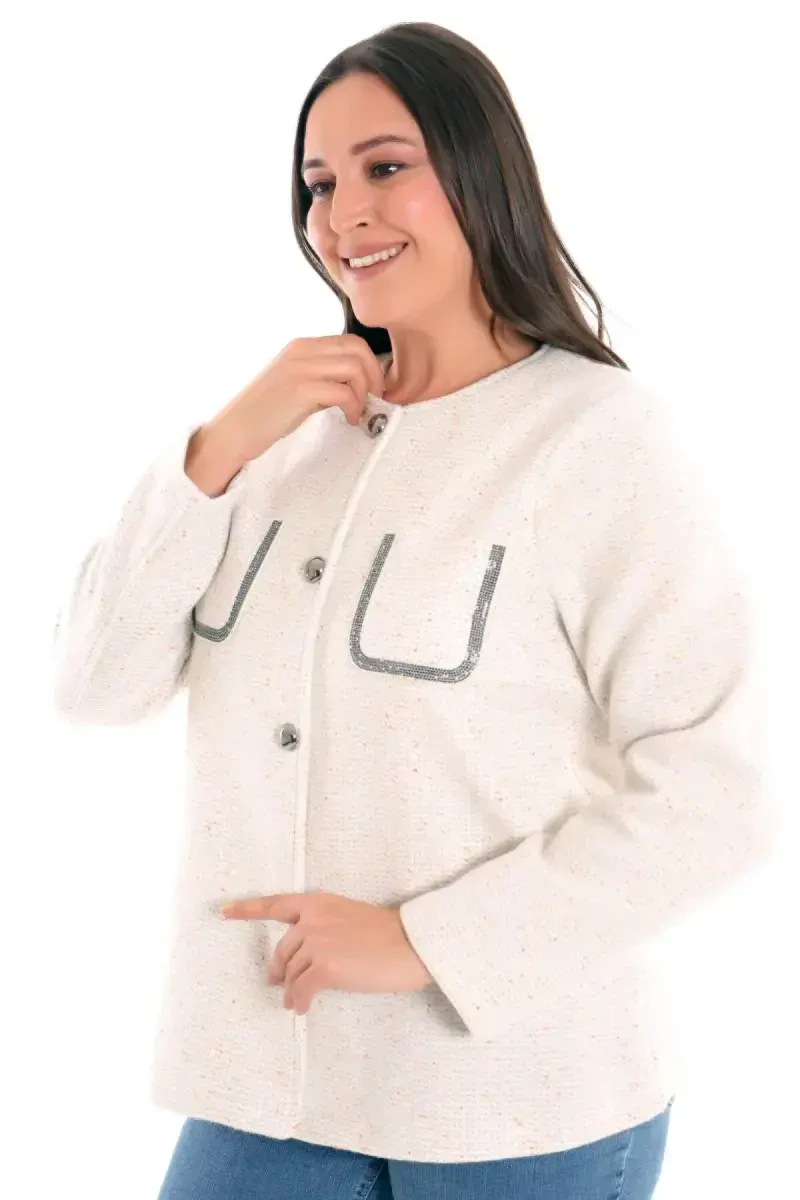 Plus size jacket, Stone detail jacket, Ecru jacket, Modern jacket, Chic jacket
