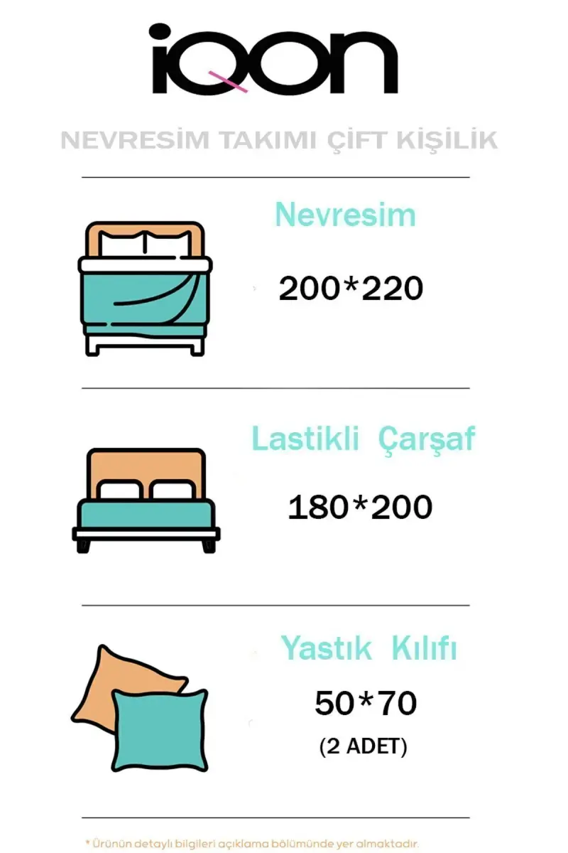 Lastikli choyshabli nevresim to'plami ikki kishilik Usmonli Firuza, yotoqxonangizga nafislik va qulaylik olib keladi. Ushbu maxsus dizayndagi choyshablar to'plami 100% paxtadan tayyorlangan bo'lib, teringizga mayin teginishlar taqdim etib, qulay uyquni ta'minlaydi. Lastikli choyshabi tufayli to'shagingizni oson o'rab oladi va tun bo'yi sirg'alish muammosini bartaraf etadi, shu bilan uzluksiz uyquni ta'minlaydi. Usmonli Firuza rangining tetiklantiruvchi ta'siri bilan yotoqxonangizda osoyishta muhit yaratadi. Ikki kishilik karavotlar uchun ideal o'lchamlarda ishlab chiqilgan ushbu to'plam, to'shagingizga mukammal mos keladi. Yuqori sifatli bosma tufayli ranglari uzoq vaqt davomida o'zining yorqinligini saqlab qoladi va birinchi kundagidek ko'rinishda davom etadi. Oson dazmollanadigan xususiyati tufayli vaqtingizni tejashingizga yordam bersa, bardoshli tuzilishi uzoq umr ko'rish imkoniyatini beradi. Ushbu choyshablar to'plami, nafaqat nafis ko'rinishni taqdim etmaydi, balki sog'lom va qulay uyqu muhitini ham yaratadi. Yuqori sifatli paxta matosi terlashning oldini oladi va teringizning nafas olishini ta'minlaydi, shu bilan tun bo'yi salqin va qulay his qilasiz. Lastikli choyshabning amaliy ishlatilishi tufayli to'shagingizni har doim tartibli va nafis tutishingiz mumkin. Usmonli Firuza rangining xotirjamligi, yotoqxonangizni xuddi spa markaziga aylantirib, kunning charchoqini chiqarishga yordam beradi. Ushbu choyshablar to'plami, ham o'zingiz uchun, ham sevikli insonlaringiz uchun mukammal sovg'a bo'lishi mumkin. Sifatli materiali, nafis dizayni va qulay xususiyatlari bilan ajralib turadigan ushbu to'plam, yotoqxonangizning ajralmas qismiga aylanadi. Har bir detalida e'tibor bilan ishlangan ushbu choyshablar to'plami, yotoqxonangizga qiymat qo'shadi va uyqu sifatini oshiradi. Yuqori ip soni tufayli matosi yanada yumshoq va bardoshlidir. Uzoq umr ko'rish uchun mo'ljallangan ushbu choyshablar to'plami, tez-tez yuvishga chidamli va ranglarini o'chirmaydi. Usmonli Firuza rangining jonliligi, yotoqxonangizga energiya va dinamizm qo'shadi. Ushbu choyshablar to'plami, shunchaki uyqu vositasi emas, balki yotoqxonangizning dekoratsiyasini to'ldiradigan nafis aksessuardir. Yuqori sifatli materiali va ehtiyotkorlik bilan ishlanganligi tufayli uzoq yillar davomida zavq bilan foydalanishingiz mumkin bo'lgan mahsulotdir. Lastikli choyshabi tufayli to'shagingizni har doim tartibli va nafis tutishingiz mumkin. Usmonli Firuza rangining xotirjamligi, yotoqxonangizni xuddi spa markaziga aylantirib, kunning charchoqini chiqarishga yordam beradi.