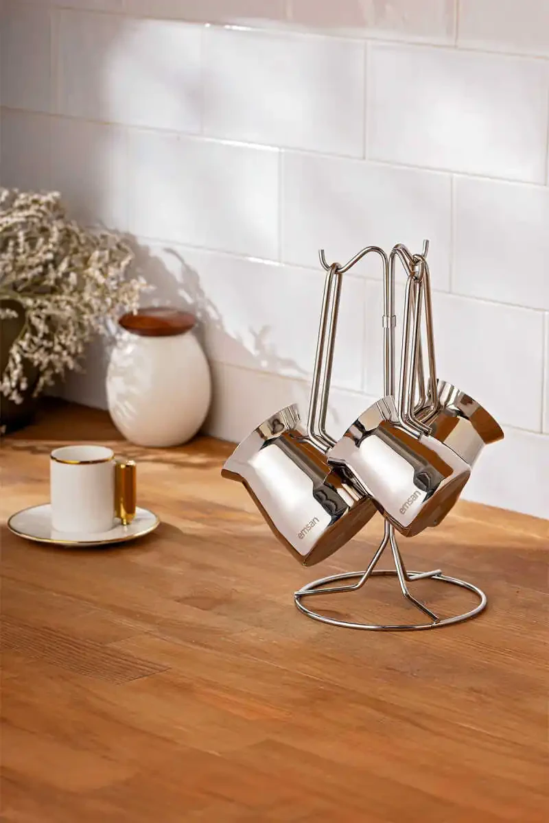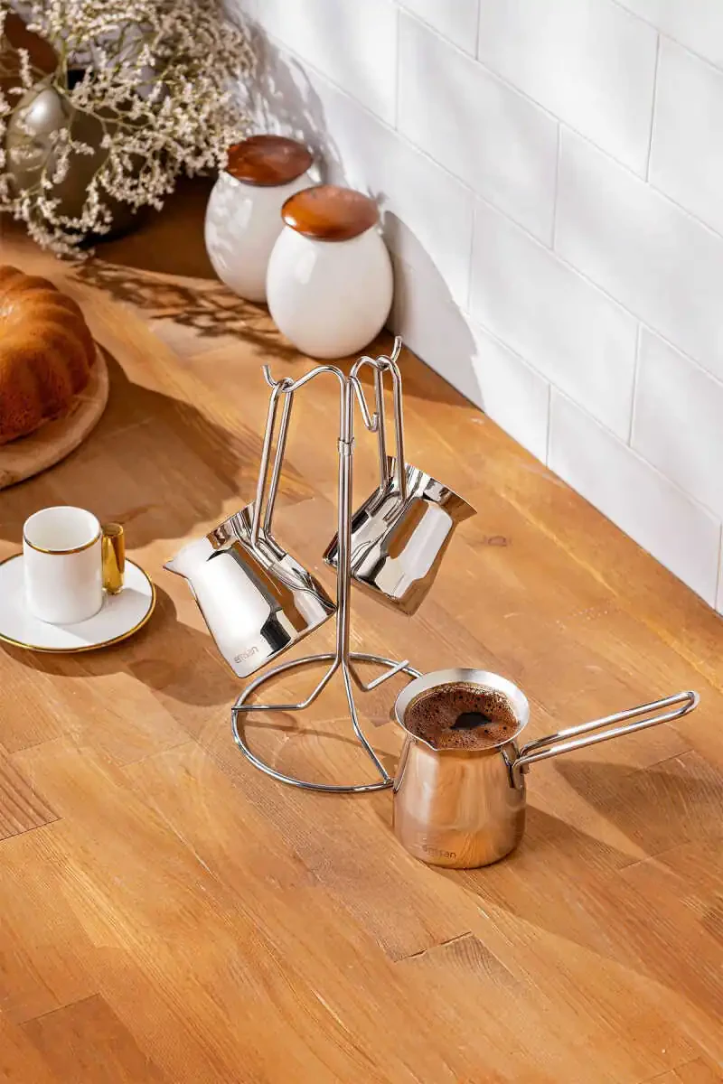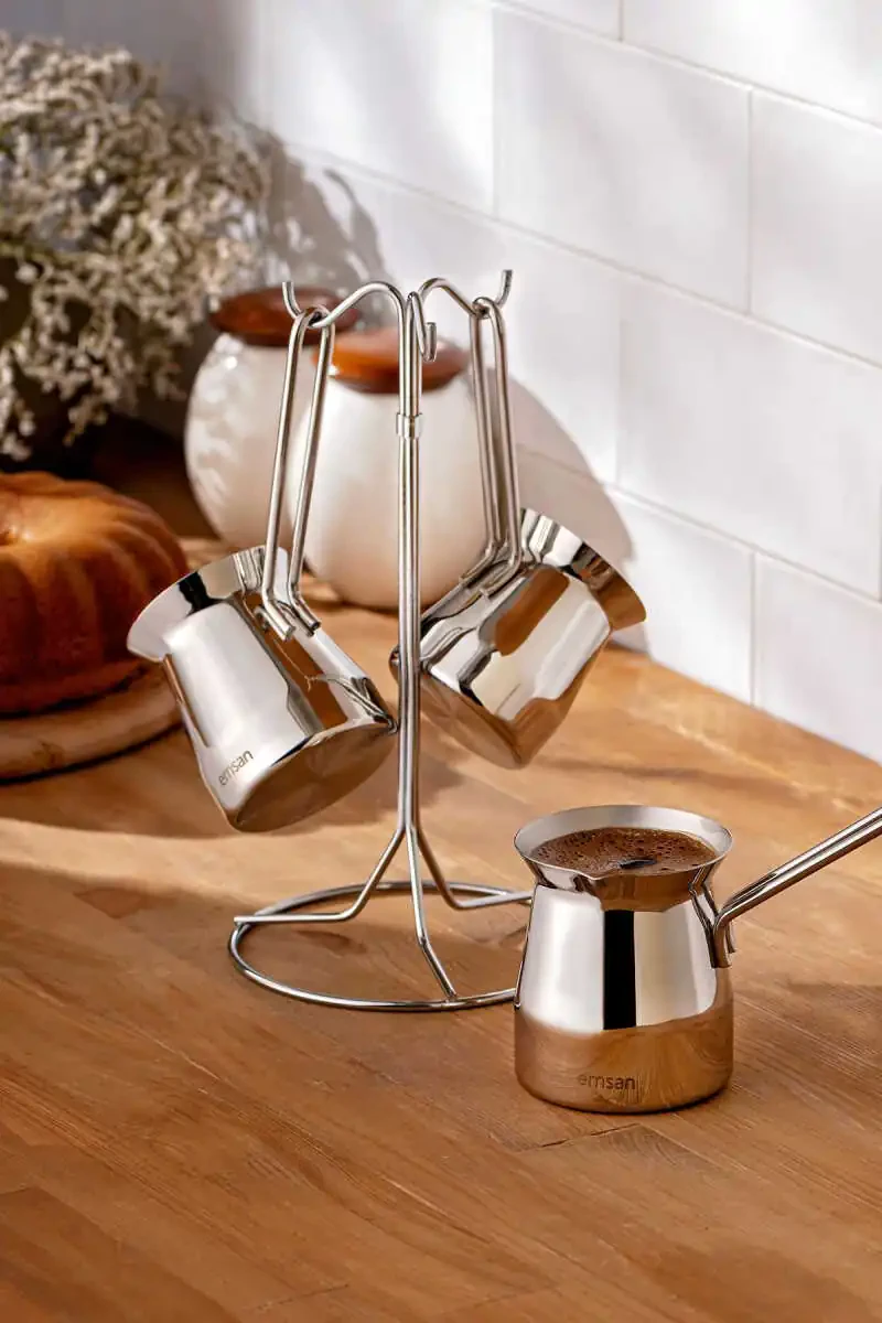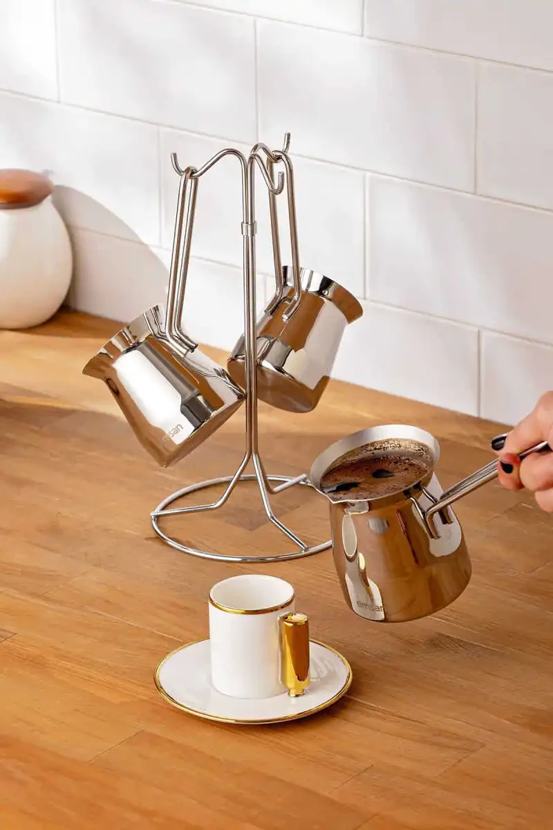 Laura 4 qismli kofe to'plami an'anaviy turk kofesini mukammal darajada damlash uchun kerak bo'lgan hamma narsaga ega. Bu to'plamda turli o'lchamdagi 2 ta kofe to'plami, 1 ta shakar idishi va 1 ta kofe chashkasi mavjud.