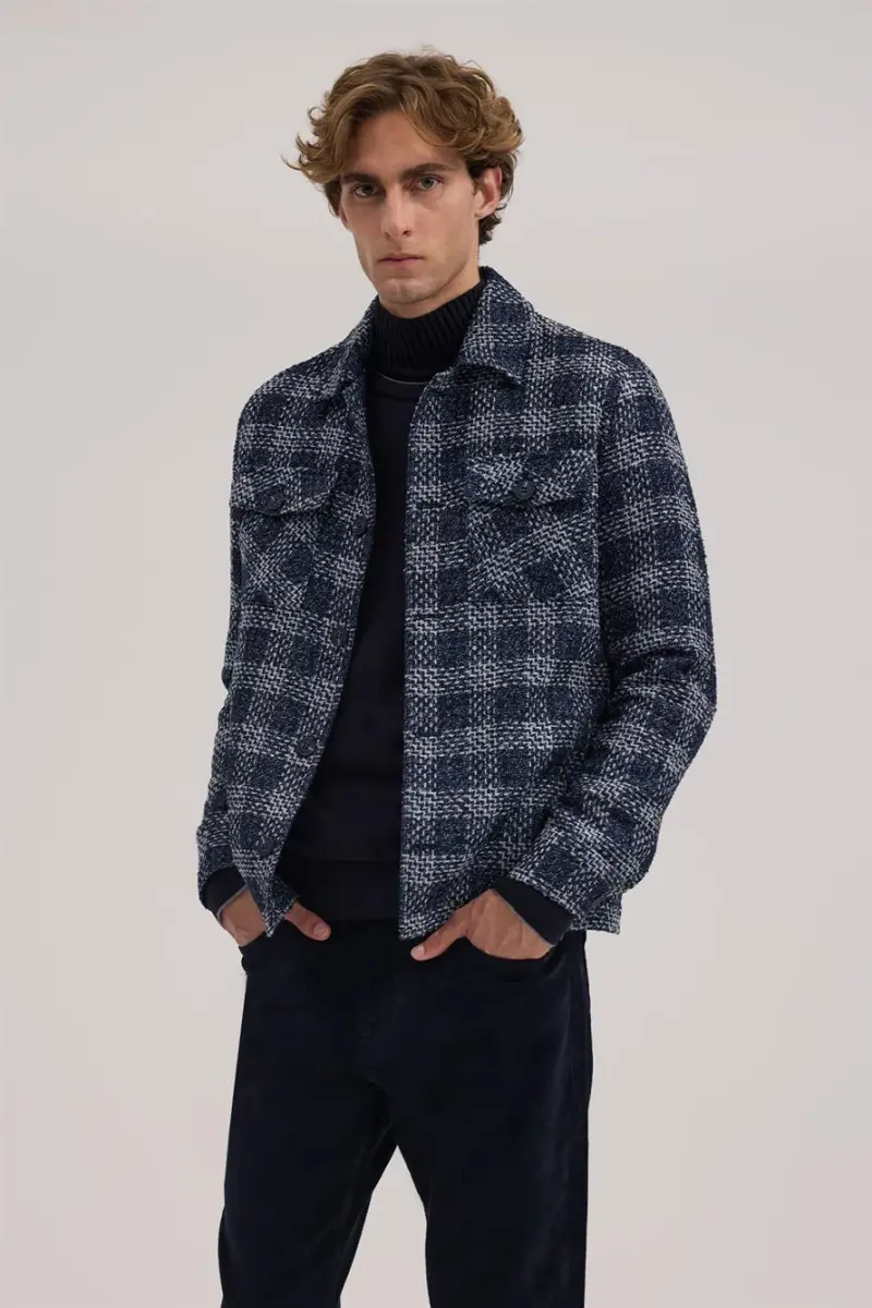 Добавьте современный и удобный штрих к своему стилю с помощью темно-синей куртки Comfort Fit в клетку с воротником-стойкой. Эта стильная куртка сочетает в себе как классические, так и современные тенденции благодаря клетчатому узору и детализации воротника-стойки. Крой Comfort fit обеспечивает полную свободу движений и идеально сидит по фигуре. Эта куртка идеально подходит для повседневной носки и станет незаменимой вещью в вашем гардеробе, как для создания повседневных образов, так и для создания более элегантного стиля.Куртка изготовлена из высококачественной ткани, состоящей из 60% акрила, 30% полиэстера и 10% вискозы. Эта смесь тканей повышает долговечность куртки, обеспечивая при этом мягкость и комфорт. Акрил помогает куртке сохранять тепло, а полиэстер обеспечивает устойчивость к сминанию и долговечность. Вискоза придает ткани легкость и красивую драпировку. Благодаря этому куртку можно носить с комфортом в течение всего дня и за ней легко ухаживать.Темно-синий цвет повышает универсальность куртки и позволяет легко сочетать ее с разными цветами. Клетчатый узор придает классический вид, а воротник-стойка создает современную атмосферу. Пуговицы спереди позволяют легко открывать и закрывать куртку, а также создают стильную деталь. Боковые карманы идеально подходят для согрева рук или безопасного хранения мелких предметов.Эта куртка согреет вас осенью и зимой, а также подчеркнет ваш стиль. Независимо от того, создаете ли вы повседневный образ с джинсами и футболкой или более элегантный образ с рубашкой и брюками чинос, темно-синяя куртка Comfort Fit в клетку с воротником-стойкой всегда будет отличным выбором. Будьте готовы привлекать внимание в любой обстановке с этой универсальной вещью в вашем гардеробе. Рост модели 186 см, обхват груди 96 см, обхват талии 80 см, размер 50. Эта информация поможет вам правильно выбрать размер. Рекомендуется соблюдать инструкции по стирке, указанные на этикетке, чтобы куртка прослужила долго.