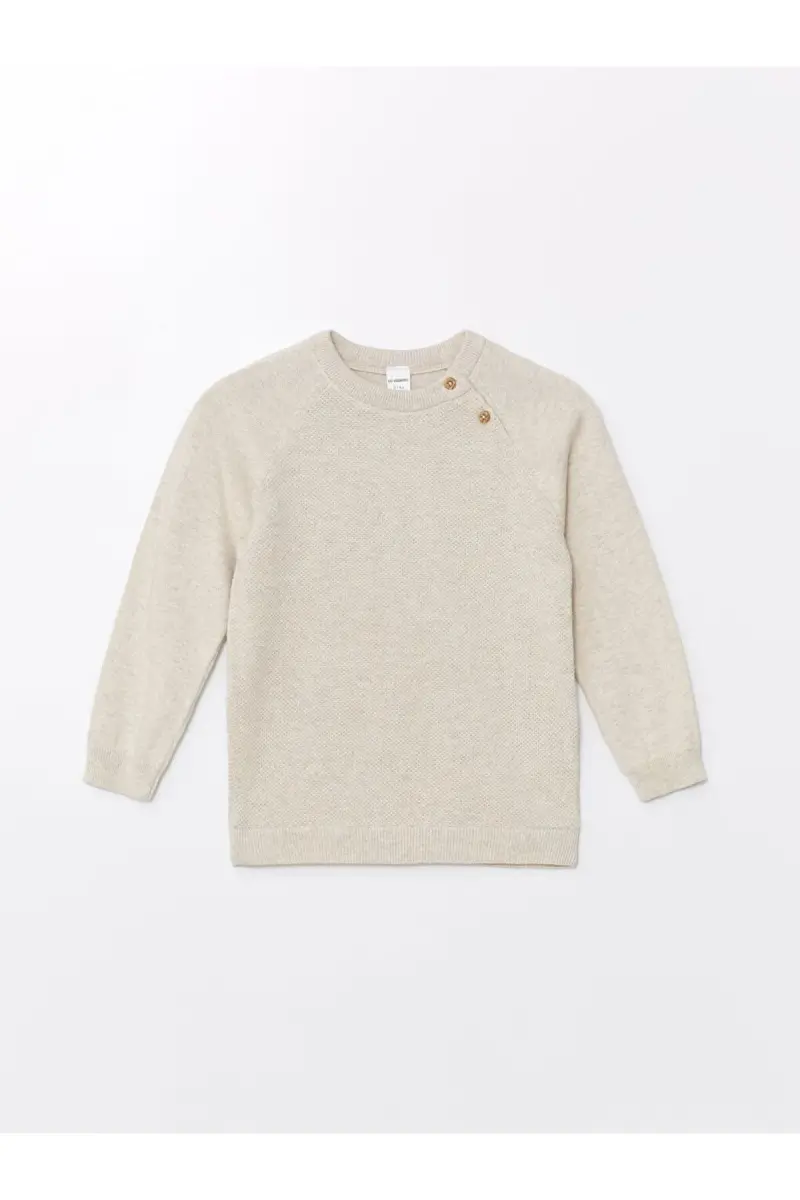 LCW Kids Bisiklet Yaka Uzun Kollu Erkek Bebek Triko Kazak-Ekru Melanj