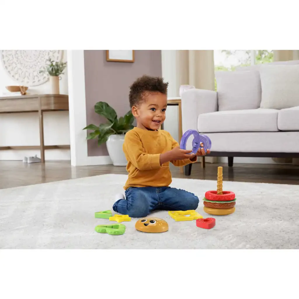 LeapFrog® 4-в-1 Учимся Гамбургеру™ - это идеальный набор игрушек, который поможет вашему ребенку развить творческие способности, координацию рук и глаз, а также мелкую моторику. Этот забавный и развивающий набор игрушек включает в себя складывающиеся и вкладывающиеся игрушки, которые помогают ребенку развивать мелкую моторику. Он также предлагает забавные и увлекательные обучающие игры, которые помогут вашему ребенку изучать числа, цвета и формы.