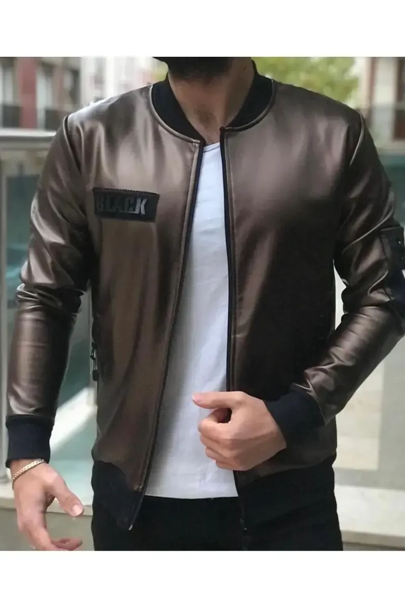 leather jacket, genuine leather, leather coat, men's jacket, classic jacket, zip-up jacket, stand-up collar jacket, long sleeve jacket, lined jacket, leather clothing