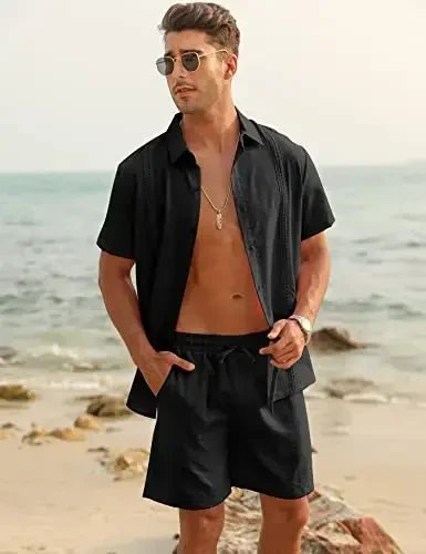 Don't compromise on style and comfort during hot summer days with LecGee Linen Sets! This two-piece linen set, specially designed for men, combines comfort and style. Whether you're at the beach, in the city, or at a special event, you'll always attract attention with this set. Thanks to its premium linen blend fabric, this set is lightweight, breathable, and has a soft touch, keeping you cool all day long. Its moisture-wicking feature prevents sweating and helps keep your skin dry. The Cuban-style shirt offers a stylish look with its short sleeves, button-down closure, band collar, and vertical pleat details. The comfortable fit of the shirt does not restrict your freedom of movement and allows you to feel comfortable all day long. The shorts are designed with a loose fit, two slanted pockets, one back patch pocket, and an adjustable drawstring elastic waistband. These features ensure that the shorts fit you perfectly and keep you comfortable throughout the day. Thanks to the drawstring waistband, you can easily adjust the waist size of the shorts. You can create various looks by combining this set in different ways. You can create a stylish and trendy look by completing it with sneakers or sandals. You can combine the shirt alone with shorts, trousers, sweatpants, or jeans. You can wear the shorts with a t-shirt, blouse, or tank top. In this way, it will easily match other pieces in your wardrobe and you will be able to create different combinations. LecGee Linen Sets are suitable for various situations such as beach, vacation, camping, travel, date, hippie style, corporate events, friend gatherings, family meals, beach weddings, yoga, and daily use. It can also be a perfect birthday, Christmas, or anniversary gift for your husband, father, son, or friends. With its high-quality material and stylish design, LecGee Linen Sets offer a special gift option that will make your loved ones happy. It is also very easy to care for thanks to its machine washable feature. However, please put it in a laundry bag when washing it in the machine to prevent damage to the fabric. In this way, you can extend the life of your suit and use it for many years. Reflect your style and enjoy the summer with LecGee Linen Sets!
