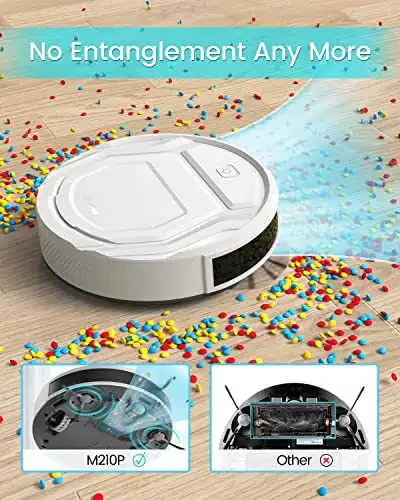 - Noyob Emish Port va Kuchli Emish: Pastki rolikli cho'tka olib tashlangan va katta emish eshigi dizayni qabul qilingan, bu sochlar, axlat va changni chang qutisiga osongina kirishini ta'minlaydi va tozalash samaradorligi 90% ga yaqinlashadi. Bu M210P-ni uy hayvonlari egalari uchun ajoyib tanlov qiladi.