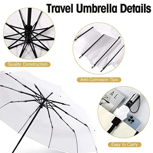 LEIFIDE Набор из 10 складных свадебных зонтов, компактный комплект, ветроустойчивые дорожные зонты от дождя, складная и портативная автоматическая конструкция открытия и закрытия, идеальное решение для 1-2 человек, женщин, мужчин и гостей. Этот набор - отличный выбор, сочетающий в себе элегантность и практичность, который будет сопровождать вас в особые дни или в повседневной жизни. Этот пакет, состоящий из 10 компактных зонтов белого цвета, идеально подходит для удовлетворения ваших потребностей и обмена ими с близкими. Этот набор, предназначенный для вашей семьи, друзей и гостей, обеспечивает их комфорт, защищая от дождя. Ветро- и водонепроницаемые зонты LEIFIDE оснащены 10 усиленными ребрами из стекловолокна, металлическим валом и прочной металлической рамой. Эта прочная конструкция позволяет зонту выдерживать сильный ветер и дождь, не сгибаясь и не ломаясь. Эти зонты имеют длину около 33 см в закрытом состоянии и обеспечивают широкую зону защиты с диаметром 109 см в открытом состоянии. Благодаря функции автоматического открытия и закрытия, дорожный зонт LEIFIDE можно легко открывать и закрывать одним нажатием кнопки. Эта функция обеспечивает большое удобство, особенно при переноске нескольких предметов в дождливую погоду. Этот практичный дизайн, экономящий время и силы, облегчает вашу повседневную жизнь. Ветронепроницаемые зонты LEIFIDE также выделяются своей портативностью и легкостью. Благодаря складной и компактной конструкции их можно легко переносить в автомобилях, рюкзаках, чемоданах, портфелях и школьных сумках. Эти зонты, которые вы можете взять с собой на работу, в школу, в отпуск, в командировки, на прогулки, в походы и на рыбалку, будут сопровождать вас в любых погодных условиях. Портативные зонты LEIFIDE можно предложить в качестве запасного для вашей семьи или в качестве продуманного подарка друзьям, любимым, родственникам, коллегам, одноклассникам и соседям. Этот элегантный подарок, который значительно облегчит им жизнь, - отличный способ показать, насколько вы их цените. Зонты LEIFIDE, изготовленные из качественных материалов и отличающиеся долговечностью, обеспечивают длительный срок службы. Эти зонты, каждая деталь которых тщательно продумана, являются идеальным выбором для тех, кто ищет сочетание элегантности и функциональности. Если вы хотите сохранить свой стиль в дождливые дни, не жертвуя при этом своим комфортом, набор из 10 складных свадебных зонтов LEIFIDE идеально подходит для вас.