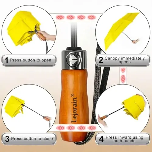Lejorain Large Folding Golf Umbrella golf, sayohat, kundalik foydalanish va ochiq havoda tadbirlar uchun idealdir. Uzoq muddatli va bardoshli materiallardan tayyorlangan. Foydalanish bo'yicha ko'rsatmalarga rioya qilingan taqdirda, u sizga ko'p yillar davomida hamroh bo'ladi.