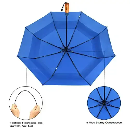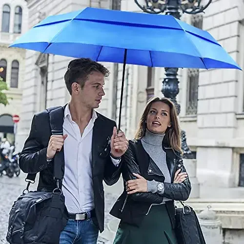 Lejorain Large Folding Golf Umbrella bilan yomg'irli ob-havoda ham uslubingiz va qulayligingizdan voz kechmasdan xavfsiz bo'ling. Ushbu ixcham dizayn mo''jizasi erkaklar va ayollar uchun ideal variantni taklif qiladi, shu bilan birga sayohatlaringizda va kundalik hayotingizda sizga hamroh bo'ladigan mukammal yechimdir. 54 dyuymli keng ochiladigan avtomatik tuzilishi bilan Lejorain soyaboni nafaqat sizni, balki sizning yoningizdagi odamni ham yomg'irdan himoya qilish uchun yetarli darajada katta maydonga ega. Qatlanganda esa, atigi 15,25 dyuymga yetadi, bu esa uni osongina olib yurish va saqlash imkonini beradi. Atigi 1,3 funt og'irligi bilan u shunga o'xshash o'lchamdagi soyabonlarga qaraganda yengilroq, shuning uchun uni o'zingiz bilan olib yurganingizda og'irlikni his qilmaysiz. Lejorain Large Folding Golf Umbrella shamolli ob-havoda chidamliligini isbotlaydi. Ventilyatsiya qilingan ikki qavatli dizayni shamolning soyabon ichidan o'tishiga imkon beradi va uning teskari burilishini oldini oladi. Shisha tolali va zanglamaydigan po'latdan yasalgan ramka tizimi zanglash va sinishga yuqori qarshilik ko'rsatadi, shuning uchun siz uni ko'p yillar davomida xavfsiz ishlatishingiz mumkin. To'satdan yomg'irga tayyor bo'lish uchun soniyalar ichida ochilib yopiladigan avtomatik mexanizmi tufayli Lejorain soyaboni sizga vaqtni tejaydi va amaliylikni taklif etadi. Mashinangizga, binoga yoki chodiringizga tezda kirishda ho'l bo'lishdan xavotirlanishingizga hojat yo'q. Suv o'tkazmaydigan 210T mato va maxsus Dupont Teflon qoplamasi tufayli Lejorain soyaboni suvni qaytaradi va tez quriydi. Ergonomik yog'och dastasi barmoq o'yiqlari bilan birga qulay ushlashni ta'minlaydi. Lejorain tajribali soyabon ishlab chiqaruvchilarining qo'lidan chiqqan yuqori sifatli golf soyabonlarini taklif etadi. Turli xil rang variantlari bilan siz o'zingizning uslubingizga mos keladiganini tanlashingiz va yomg'irli ob-havoda ham uslubingizni saqlab qolishingiz mumkin. Lejorain Large Folding Golf Umbrella bilan yomg'irdan zavqlaning!