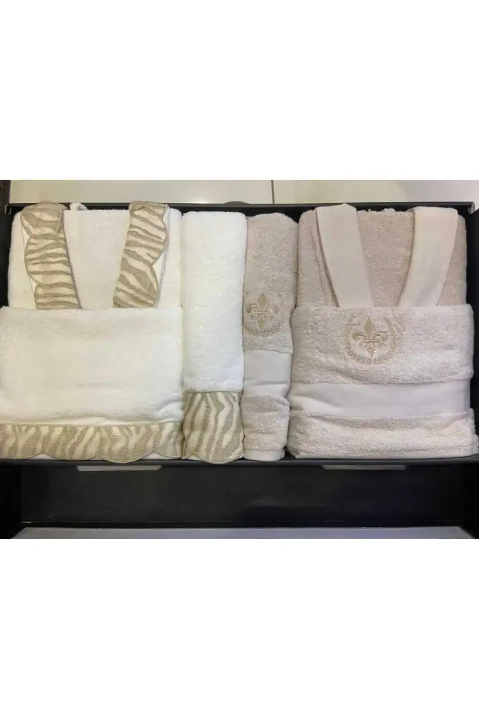 Познакомьтесь с семейным халатом LEO с кружевным вышитым рисунком из бамбука, который обеспечит вам и вашей семье приятные и расслабляющие водные процедуры! Этот набор, выполненный в элегантном сочетании кремового и бежевого цветов, с изящными кружевными вышитыми деталями, преобразит атмосферу вашего дома. Ткань из смеси 30% хлопка и 70% бамбука, которая обеспечивает мягкое и роскошное ощущение, бережно относится к вашей коже, а ее воздухопроницаемая структура обеспечивает комфорт в течение всего дня. Набор включает в себя два халата разных размеров и четыре полотенца; таким образом, он обеспечит достаточный и гармоничный опыт принятия ванны для всей вашей семьи. Халаты размеров S/M и L/XL подойдут каждому члену семьи, а банные полотенца размером 70x140 см и полотенца для лица размером 50x70 см обеспечат превосходное ощущение сухости после водных процедур. Семейный халат LEO с кружевным вышитым рисунком из бамбука — идеальный выбор для тех, кто ищет сочетание стиля и комфорта, прекрасная возможность побаловать себя после теплого душа или ванны. Изготовленный из высококачественных материалов, этот набор будет служить вам долгие годы, способствуя созданию особенных моментов, проведенных вместе с членами вашей семьи. Поскольку наши запасы ограничены, не упустите эту уникальную возможность и сделайте заказ прямо сейчас. Наш товар будет отправлен компанией Çırpan Ev, и у вас есть право на бесплатный возврат в течение 15 дней. Для получения подробной информации посетите соответствующую страницу. Вы можете заказать не более 10 единиц товара. Для получения дополнительной информации свяжитесь с нашей службой поддержки клиентов.