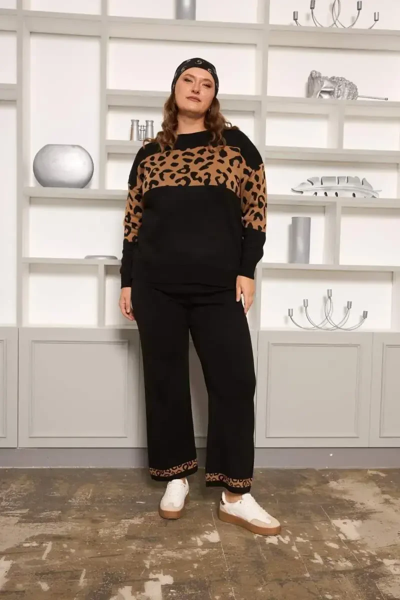 Leopard bezakli kattalashtirilgan kostyum bilan nafislik va qulaylikni birga his eting! Ushbu maxsus dizayndagi kostyum kattalashtirilgan ayollarning tana chiziqlarini mukammal tarzda namoyish etadi va leopard detallari bilan e'tiborni tortadigan uslubni taqdim etadi. Kundalik foydalanish uchun ideal bo'lgan ushbu kostyum uyda bemalol vaqt o'tkazishda ham, tashqarida nafis ko'rinishga ega bo'lishni xohlaganingizda ham sizga hamroh bo'ladi.%100 akril trikotaj matodan tayyorlangan kostyum yumshoq to'qimasi tufayli teringizga muloyimlik bilan tegadi va kun bo'yi qulay foydalanishni ta'minlaydi. Akril matoning chidamliligi tufayli siz uzoq umr ko'rish tajribasiga ega bo'lasiz. Trikotaj matoning elastikligi harakatlanish erkinligingizni cheklamay, sizga mukammal tarzda moslashishini ta'minlaydi.Kostyumning yuqori qismi qulay kesimi va leopard bezakli detallari bilan ajralib turadi. Nafaqa va zamonaviy ko'rinishni taqdim etadigan ushbu detallar kostyumga boshqacha havo beradi. Pastki qismi esa, baland belli dizayni tufayli qorinni tortadi va yanada ozg'in ko'rinishga ega bo'lishingizga yordam beradi. Oyoq qismidagi qulay kesim kun bo'yi qulay foydalanishni ta'minlaydi.Ushbu kostyum turli kombinatsiyalarda ham ishlatilishi mumkin. Yuqori qismini yolg'iz jinsi shimlar yoki yubkalar bilan birlashtirib, boshqa uslub yaratishingiz mumkin. Pastki qismini esa, oddiy futbolka yoki bluzka bilan to'ldirib, kundalik nafisligingizni saqlab qolishingiz mumkin.Leopard bezakli kattalashtirilgan kostyum sizning garderobingizning ajralmas qismiga aylanadi. Ham nafis, ham qulay bo'lishni xohlovchi kattalashtirilgan ayollar uchun ideal tanlovdir. O'zingizni maxsus va ishonchli his etishingizga yordam beradigan ushbu kostyumni hoziroq kashf eting!