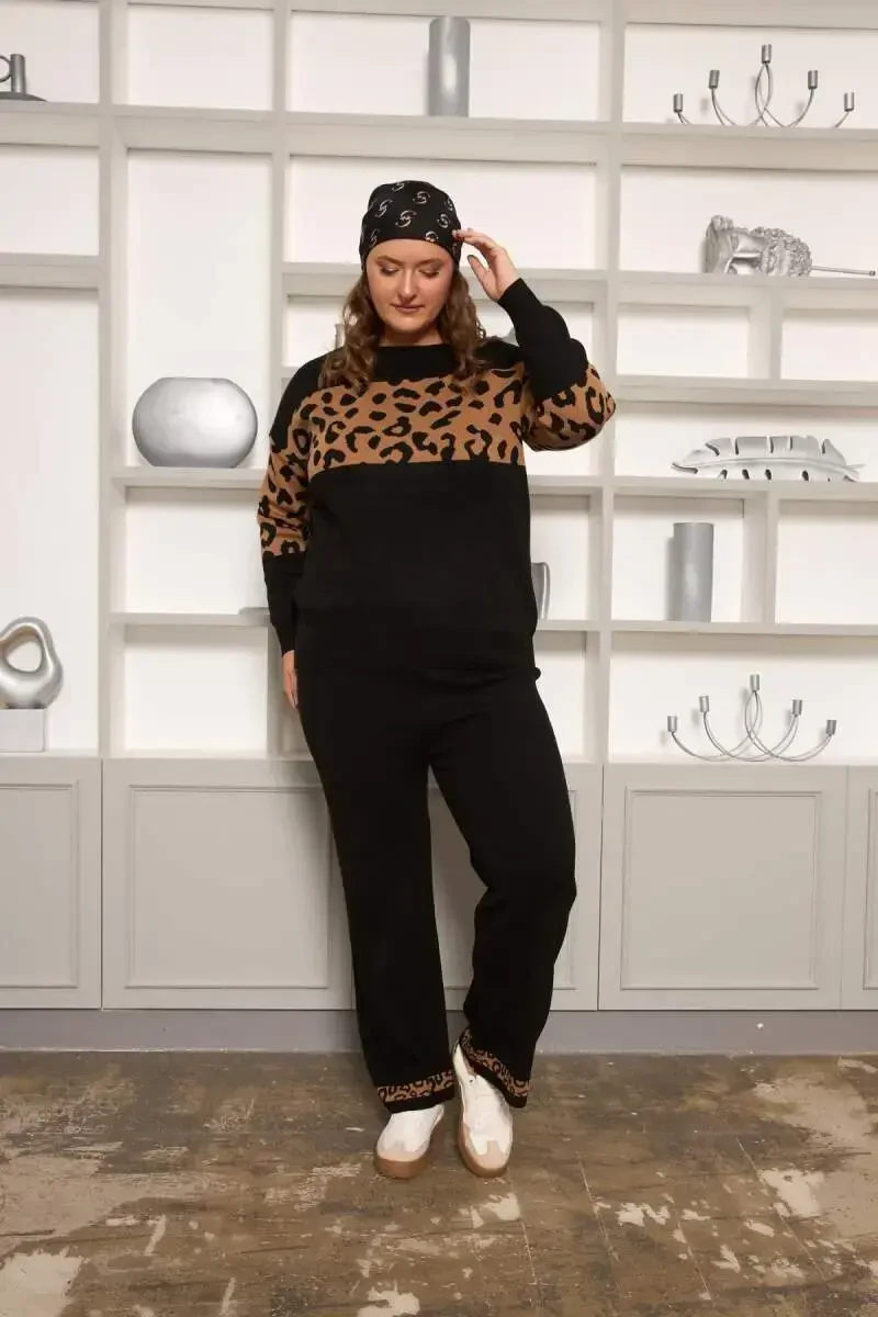 Почувствуйте элегантность и комфорт с черным комплектом большого размера с леопардовым принтом! Этот комплект специального дизайна идеально подчеркивает фигуру женщин большого размера, а леопардовые детали придают стильный вид. Этот комплект идеально подходит для повседневного использования и будет сопровождать вас, когда вы захотите чувствовать себя комфортно дома и выглядеть стильно на улице.Комплект изготовлен из 100% акриловой трикотажной ткани, которая мягко касается вашей кожи благодаря своей мягкой текстуре и обеспечивает комфорт в течение всего дня. Благодаря долговечности акриловой ткани вы получите долговечный опыт использования. Эластичность трикотажной ткани обеспечивает идеальную посадку без ограничения свободы движений.Верхняя часть комплекта выделяется удобным кроем и деталями с леопардовым принтом. Эти детали, придающие стильный и современный вид, придают комплекту особую атмосферу. Нижняя часть благодаря высокой посадке подтягивает область живота и помогает вам выглядеть более подтянутой. Удобный крой штанин обеспечивает комфорт в течение всего дня.Этот комплект можно использовать с различными комбинациями. Вы можете создать другой стиль, сочетая верхнюю часть отдельно с джинсами или юбками. Вы можете дополнить нижнюю часть базовой футболкой или блузкой и сохранить свой повседневный стиль.Черный комплект большого размера с леопардовым принтом станет незаменимой частью вашего гардероба. Это идеальный выбор для женщин большого размера, которые хотят быть одновременно стильными и удобными. Откройте для себя этот комплект прямо сейчас, который поможет вам почувствовать себя особенной и уверенной в себе!