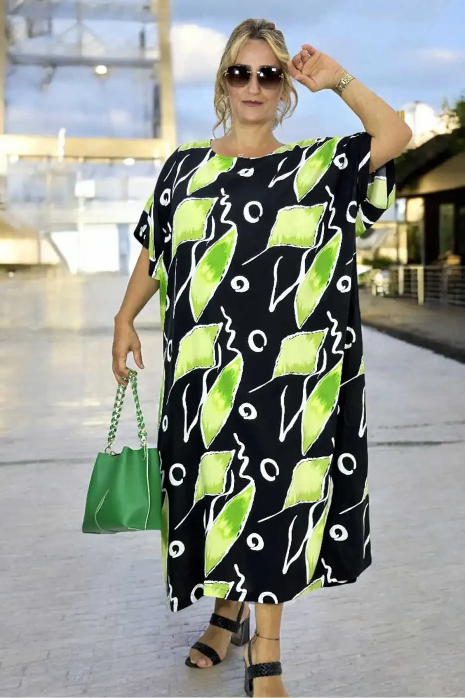 платье с воротником-стоячим, платье с низким рукавом, платье свободного покроя, летнее платье, хлопчатобумажное платье, вискозное платье, платье больших размеров, женская одежда, летняя одежда