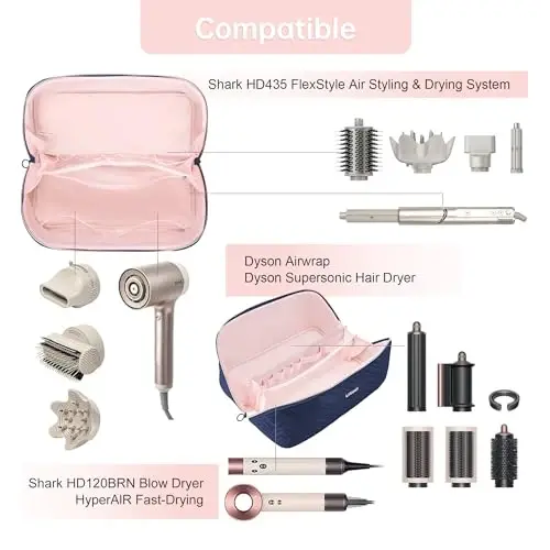 The Leudes Hair Tools Travel Case is the perfect solution for your Shark Flexstyle hair styler and valuable accessories. Designed especially for users who travel or like to keep their belongings organized, this case maximizes the safety and portability of your Shark Flexstyle. Combining elegance and sophistication with its navy blue color, this case offers not only a functional but also a visually satisfying experience. Made of high-quality materials, the Leudes travel case protects your device and accessories from external factors, ensuring long-lasting use. The shockproof EVA material provides reliable protection against unexpected impacts, while the dustproof and water-resistant structure helps keep your device clean and dry. Thus, your Shark Flexstyle is always ready for use and in top condition. Inner compartments and elastic bands ensure that your device and accessories are securely placed and remain organized. Different sized compartments allow separate storage of attachments, cables and other small accessories, so you can easily find everything you need. Elastic bands keep your device in place, minimizing damage that may occur during movement. The Leudes Hair Tools Travel Case not only provides protection and organization, but also ease of use. Thanks to its lightweight and portable design, you can easily carry the case with you and have a practical solution for your travels or daily use. The durable zipper ensures that the case is securely closed, preventing your device and accessories from falling out or getting lost. The stylish navy blue color gives the case a modern and elegant look. This color makes the case suitable for both professional and personal use. The Leudes Hair Tools Travel Case is an indispensable accessory for Shark Flexstyle users. It allows you to safely carry your device, store it in an orderly manner and keep it ready for use at all times. This case is the best way to protect your investment and make your travels more enjoyable. Now you don't have to worry about traveling with your Shark Flexstyle or storing your device at home. With the Leudes Hair Tools Travel Case, your device will always be safe and organized.
