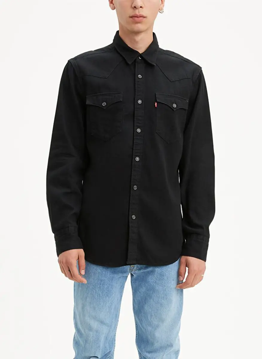 Levi's рубашка, мужская рубашка, облегающая рубашка, черная рубашка, рубашка с длинными рукавами, хлопковая рубашка, однотонная рубашка, BARSTOW WESTERN STANDARD, 85744-0002, мужская одежда