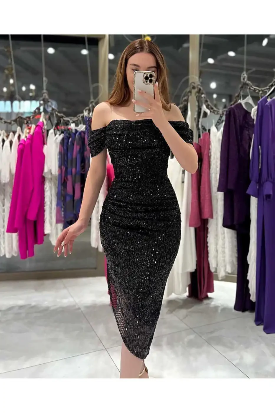 The Liana Cowl Neck Midi Dress in Black is set to become one of the most coveted pieces in your wardrobe, bringing together elegance and modern chic. Drawing attention with its special design, this dress is ready to accompany you at every moment. This black midi dress from the Liana series, named after elegance and distinguished by its draped structure, offers a feminine and sophisticated touch, especially with the cowl neck detail in the décolletage area. The cowl neck gracefully frames the neck and shoulder area, drawing attention to this region, while its draped and flowing structure gives the dress a unique character. This detail is ideal for those seeking simplicity and elegance combined. The dress's fabric structure, which is fitted yet offers a high degree of flexibility, perfectly shapes your silhouette without restricting your freedom of movement and provides high-level comfort throughout the day. The elegant midi-length skirt design, ending below the knee, exhibits both a modern and classic stance while offering ample room for different shoe and accessory combinations. The high-quality, soft-touch, and draped flexible crepe fabric makes the dress feel as if it's gliding on you, does not feel heavy, and gives a pleasant sensation to the skin. The noble and powerful stance of black makes the Liana dress an ideal choice for many different occasions such as special days, business dinners, cocktails, elegant evening invitations, graduation ceremonies, or other celebrations. You can instantly achieve a chic and impressive look by completing the dress with minimal gold or silver jewelry and elegant high heels. For a more layered and different style, you can combine it with a stylish blazer jacket, leather jacket, or an elegant shawl. The Liana dress expertly combines simplicity and subtlety in details, moving away from the ordinary and exhibiting a sufficiently striking presence on its own. It is a perfect base piece for reflecting your personal style with accessories. Thanks to its flexible fabric structure, it easily adapts to different body types and ensures you feel confident and comfortable at all times. With its quality stitching and durable fabric, the Liana Black Midi Dress will be one of the staple pieces in your wardrobe that will retain its value for many years. This dress is not just a garment, but also an expression of self-confidence, elegance, and a modern attitude. You can be sure that with Liana, you will draw attention in any environment you enter and leave a lasting impression with your elegance. It is a perfect choice for women who love to invest in classic and timeless pieces. Add a sophisticated and unforgettable touch to your style with this unique piece, and feel special at every moment.