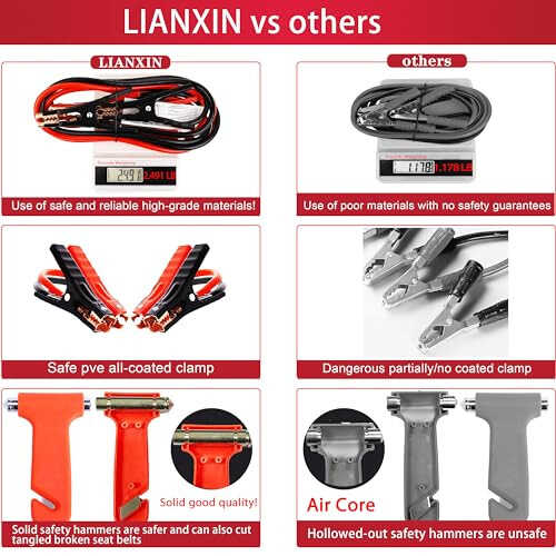 LIANXIN Yol Yardım Acil Durum Kiti, aracınızda karşılaşabileceğiniz beklenmedik durumlar için ihtiyacınız olan her şeyi sağlayan 142 parçalık kapsamlı bir settir. Bu kit, gelişmiş akü takviye kabloları, güçlü çekme halatı, güvenlik çekici ve emniyet kemeri kesicisi, hayat kurtaran battaniye, yağmurluk, pusula, kar küreği, flaşörler, yansıtıcı üçgen uyarı işaretleri ve daha fazlasını içerir! Sadece acil yol durumları için değil, aynı zamanda kamp, yürüyüş, avcılık gibi açık hava aktiviteleri için de mükemmel bir hazırlık kitidir. Aracınızın bagajında, arka koltuğunuzda veya stepne bölmenizde rahatlıkla saklayabileceğiniz kompakt ve hafif tasarımı sayesinde her zaman yanınızda bulundurabilirsiniz. Dayanıklı ve güvenilir malzemelerden üretilmiş LIANXIN Yol Yardım Acil Durum Kiti, yolda güvenliğinizi ve huzurunuzu sağlar. Gelişmiş akü takviye kabloları UL sertifikalıdır ve diğer sertifikasız kablolara göre daha güvenli ve güvenilirdir. Dört büyük timsah klipsi mükemmel kavrama sağlar ve yalıtım kauçuk kılıfı ile kaplanmıştır. Takviye kablosu, donmaya, çatlamalara ve dolaşmalara karşı dayanıklı yüksek kaliteli PVC malzemeden üretilmiştir. Ayrıca, kit içerisinde bulunan küçük ve kompakt alet kutusu, her türlü küçük tamir işini halletmenizi sağlayacak düzenli ve temiz bir şekilde düzenlenmiş aletler içerir. LIANXIN Yol Yardım Acil Durum Kiti, sevdikleriniz ve kendiniz için mükemmel bir hediye seçeneğidir. Yolda güvende kalmak ve her türlü duruma hazırlıklı olmak için ihtiyacınız olan her şey bu sette!