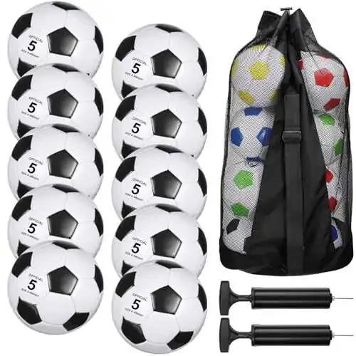 Libima 13 Pcs Soccer Ball Bulk - 10 Size 5 Soccer Balls, 2 Pumps, Carry Bag
