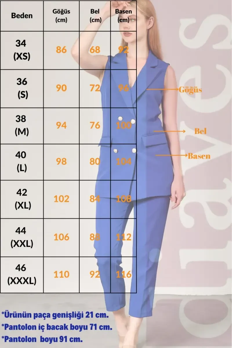 Turn a new page in your wardrobe with the Light Blue Blazer Vest Straight Leg Pants Atlas Fabric Suit. This suit, carefully designed by SİZTEX, combines a modern and stylish look, allowing you to attract attention in any environment. Carrying the unique lines of the Design collection, this suit provides a perfect fit for every body type thanks to its standard size cut. The jacket collar detail offers an elegant style suitable for classic and formal environments, while the plain pattern makes it easy to combine by providing a simple and stylish look. The straight leg pants design creates a modern and sophisticated silhouette, while the regular fit provides freedom of movement and maintains your stylish stance. The woven structure of the atlas fabric offers durability and comfort together, providing long-lasting use. Thanks to its polyester-mixed material structure, it offers easy maintenance and promises long-lasting use. You can choose this suit in business life or special occasions, it completes your professional look and highlights your style. This suit, which offers a dynamic and fresh look with its light blue color, is a candidate to be an indispensable part of your wardrobe. Stocks of the product are limited, so hurry to have this unique design. You can have a risk-free shopping experience with a free return option within 15 days. Remember, with this suit, you will not only dress, but also reflect your style.