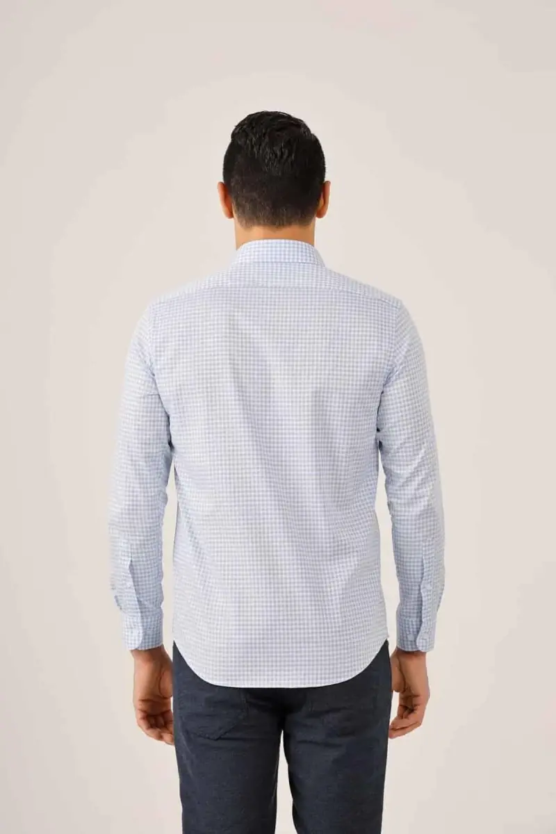 Light Blue Men's Slim Fit Plaid Pattern Half Italian Collar Long Sleeve Shirt is a candidate to be one of the indispensable pieces of your wardrobe. Combining elegance and comfort, this shirt allows you to reflect your style in any environment. The eye-catching plaid pattern offers a modern and dynamic look, while the light blue color adds a fresh touch. The half Italian collar detail helps you display a classic and sophisticated stance, while the long-sleeved design is an ideal choice for seasonal transitions. It keeps you warm in cool weather and prevents you from sacrificing your elegance. Made from a blend of cotton and polyamide, it offers breathability and comfort all day long. It provides a comfortable use experience with its non-sweating structure. The slim fit cut creates a modern silhouette that hugs your body, while the straight cut does not restrict your freedom of movement. The standard length is a choice that can be used comfortably by everyone, adapting to different body types. The woven fabric type increases the durability of the shirt and offers a long-lasting use. This shirt not only offers a stylish look, but also stands out with its ease of use and durability. Whether in daily life or at special occasions, it always ensures you look stylish and well-groomed. Thanks to its design that appeals to all age groups, it is a versatile piece that can adapt to any style. Take your style one step further with the Light Blue Men's Slim Fit Plaid Pattern Half Italian Collar Long Sleeve Shirt.
