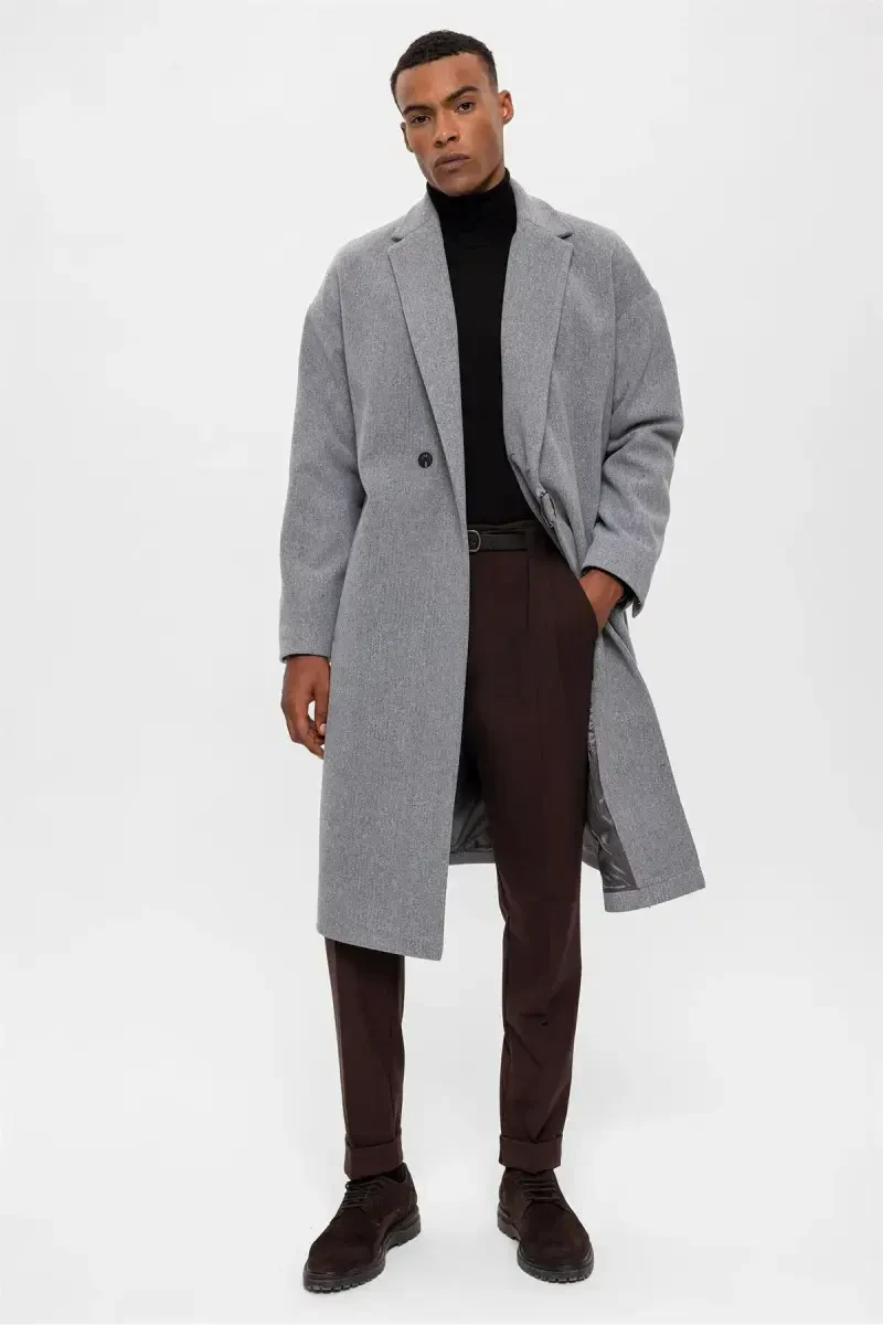 Light Grey Belted Oversize Men's Coat is a stylish and functional piece that should be in the wardrobe of the modern man. This coat combines comfort and style, allowing you to stand out in any environment. Its oversize cut offers a modern silhouette without restricting your freedom of movement. The light grey color can be easily combined with any outfit and promises a timeless elegance. The belt detail allows you to adjust the coat to your body, offering different style options. This coat, which you can prefer both in daily use and on special occasions, keeps you warm in cold weather while allowing you not to compromise on your style. It is an investment that you can use for many years thanks to its quality fabric and careful workmanship. Take your style to the next level with the Light Grey Belted Oversize Men's Coat. This coat is not just a piece of clothing, but also a form of expression. It will make you feel good and help you make a difference in every environment you enter. It is an ideal choice for men who are looking for both elegance and comfort. You can protect your style even in cold weather with this coat, which is a candidate to be an indispensable part of your wardrobe. Combining classic and modern lines, this design appeals to all age groups. This coat, which you can easily use both in business life and in social activities, will be one of the most versatile pieces of your wardrobe. The quality of its fabric and the durability of its stitching offer a long-lasting use. The light grey color easily harmonizes with other colors, allowing you to create different combinations. Its oversize cut perfectly covers your body lines and offers you comfortable use. The belt detail allows you to shape the coat as you wish and create different styles. This coat not only keeps you warm but also reflects your style. You will always be remarkable with this coat that will make you feel safe and stylish. Offering elegance and comfort together, this coat is a candidate to be one of the most valuable pieces of your wardrobe. This design, in which every detail has been carefully considered, offers you a perfect experience. If you want to protect your style in cold weather while staying warm and comfortable, the Light Grey Belted Oversize Men's Coat is for you. This coat is not just a piece of clothing, but also a lifestyle.