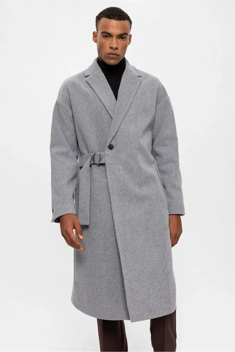 Light Gray Coat, Men's Coat, Oversize Coat, Belted Coat, Modern Man, Stylish Coat, Casual Coat, Winter Coat, Trendy Man, Comfortable Coat