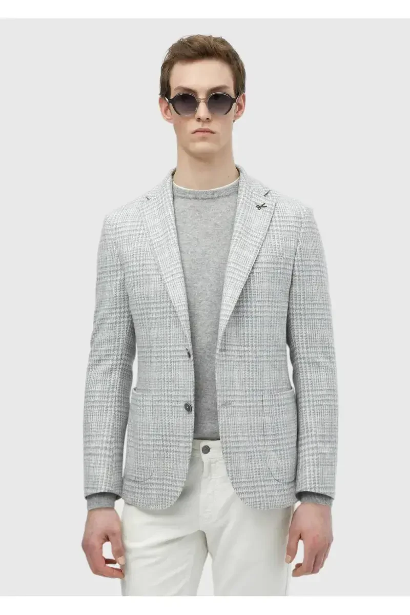 The Light Grey Checked Shirt Shoulder Slim Fit Wool Blend Jacket, a perfect blend of elegance and comfort, is a must-have in the modern man's wardrobe. Its timeless checkered pattern, combined with a sophisticated light grey tone, offers a stylish look in any setting. The slim fit cut perfectly embraces your body, creating a modern and fit silhouette. The shirt shoulder detail on the shoulders adds a relaxed and natural feel to the jacket without restricting your freedom of movement. Thanks to its wool blend fabric, it keeps you warm and breathable, providing comfort throughout the day. This jacket allows you to stay comfortable without sacrificing your style, both in daily life and on special occasions. Whether you create a casual combination with a t-shirt and jeans, or a formal look with a stylish shirt and dress pants, this jacket will always provide you with a perfect fit. With its quality workmanship and durable construction, it will be a staple in your wardrobe for years to come. With its extremely stylish and modern design, this jacket is an ideal choice for men who care about their style. Product stocks are limited, so hurry up and own this unique piece! Presented to you with the RAMSEY guarantee, this jacket will more than meet your expectations. A perfect choice for those who seek both elegance and comfort.