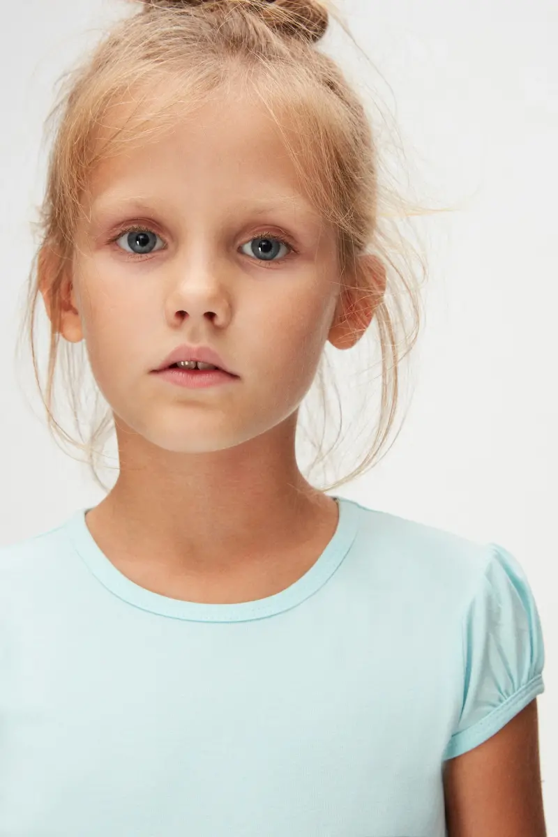 The Light Turquoise Basic Girl's Crew Neck Watermelon Sleeve T-Shirt offered by Lovetti is a candidate to be an indispensable part of girls' summer wardrobe. This t-shirt combines comfort and elegance, allowing children to move comfortably while also allowing them to look stylish. The fact that it is made of knitted material ensures that the t-shirt has a breathable structure, which minimizes children's sweating, especially on hot summer days, and helps the skin stay comfortable. Thanks to its standard fit, the t-shirt fits the body perfectly, does not restrict freedom of movement and allows children to feel comfortable all day long. Its patternless design allows the t-shirt to be easily combined with different outfits. It is compatible with all kinds of bottom wear products, from skirts to trousers, from shorts to tights, allowing different styles to be created. The crew neck cut adds a modern touch to the t-shirt and allows children to put it on and take it off comfortably. The short-sleeved design is an ideal choice for the summer heat. The watermelon sleeve detail adds a different and stylish look to the t-shirt. The light turquoise color gives the t-shirt a lively and energetic look. This color reflects the joy and liveliness of the summer months and helps children radiate positive energy. This t-shirt, carefully prepared by Lovetti's expert design team, offers a style suitable for all kinds of daily activities. It can be easily preferred in any environment, whether it is meeting friends, playing in the park or holiday trips. Lovetti is known as a brand that prioritizes quality and comfort in girls' clothing. This t-shirt is a reflection of Lovetti's understanding. Produced using high quality materials, the t-shirt is long-lasting and does not wear out easily. In this way, your children can enjoy using the t-shirt for a long time. Lovetti's t-shirt is an ideal choice for parents looking for both a stylish and comfortable option. Order Lovetti's unique product now and add style to your daughter's wardrobe!