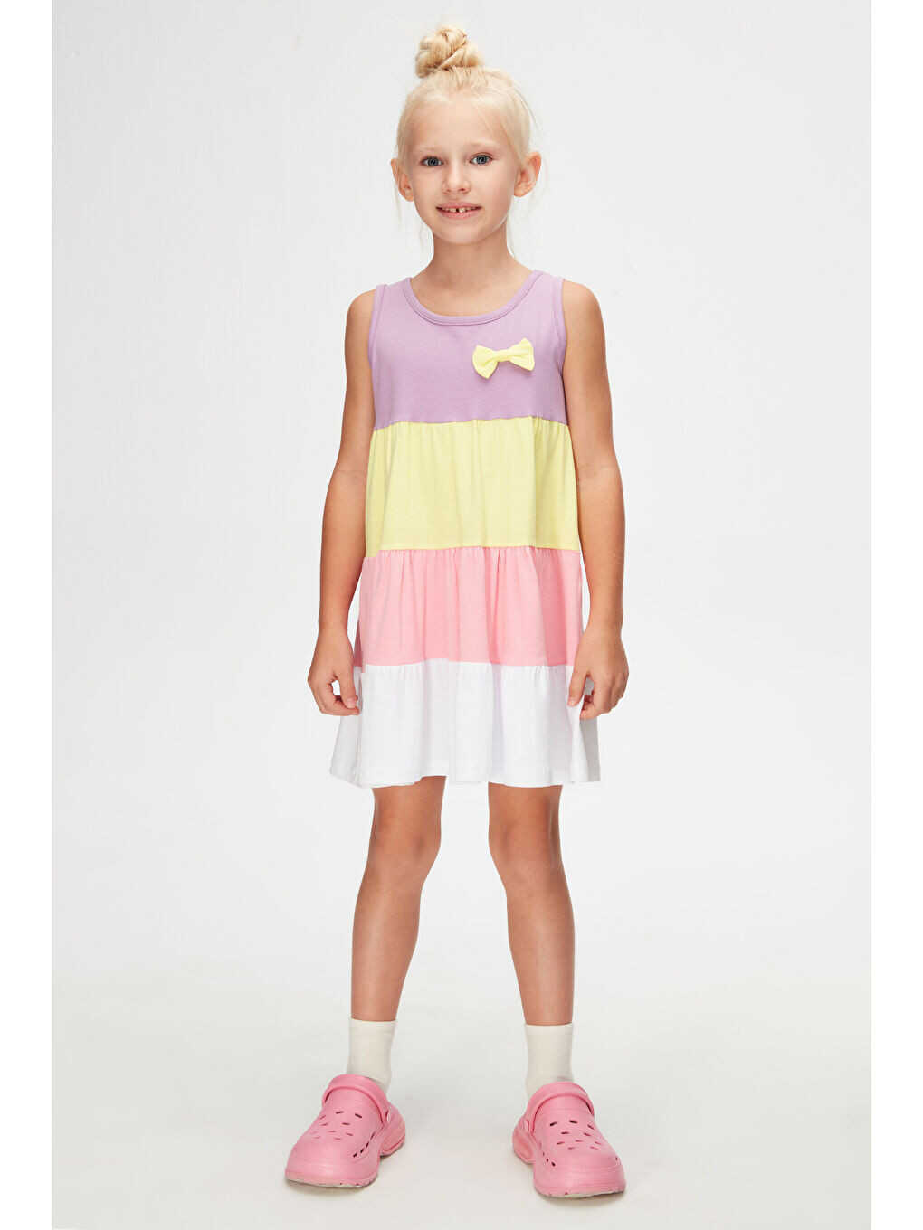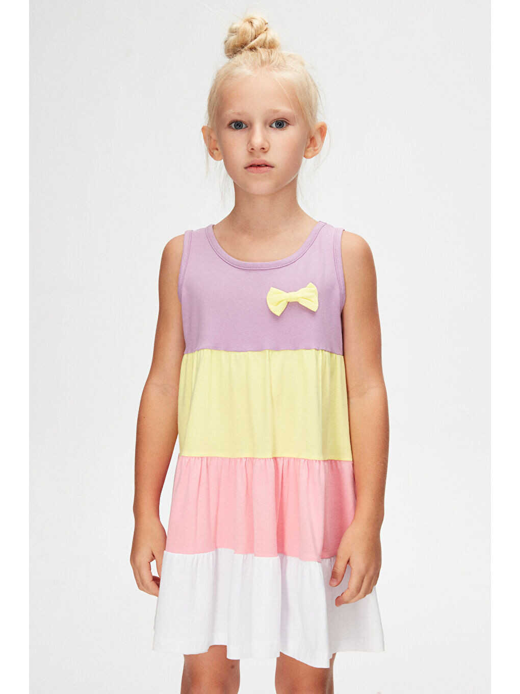 Qiz bola ko'ylagi: Binafsha burmali kamisoli, rangli yozgi ko'ylak