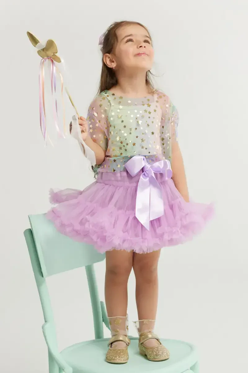 Your little princess will dazzle in any setting with the Lila Girl's Tulle Skirt - Bonita-Lila! This special design tulle skirt is an elegant and stylish piece that adorns the dreams of little girls. It is a perfect choice to complete the style of little ones on special occasions such as birthdays, special invitations and photo shoots, as well as daily use. Thanks to its elasticated waist, it can be easily put on and taken off and offers comfortable use all day long. The ribbon detail adds a different elegance to the skirt, while the inner lining ensures that your child's skin is not irritated and has a comfortable experience. The high-quality tulle fabric makes the skirt look puffy and showy, while its light structure does not restrict your child's freedom of movement. With the magical effect of the lilac color, your little girl will look like she has stepped out of a fairy tale. This special design skirt offered with Le Mabelle assurance is an ideal choice for parents looking for elegance and comfort together. This tulle skirt, which will add elegance and fun to your daughter's wardrobe, will be one of her favorite pieces. Remember, you can order a maximum of 10 of this product. Orders over 10 units may be canceled by Trendyol. This limit is not valid for corporate orders, and different limits are set for corporate orders. You can safely purchase the Lila Girl's Tulle Skirt - Bonita-Lila with a free return option within 15 days. This skirt, which will be indispensable for little fashion lovers, will help them turn their dreams into reality. Order now and add a magical touch to your child's wardrobe!
