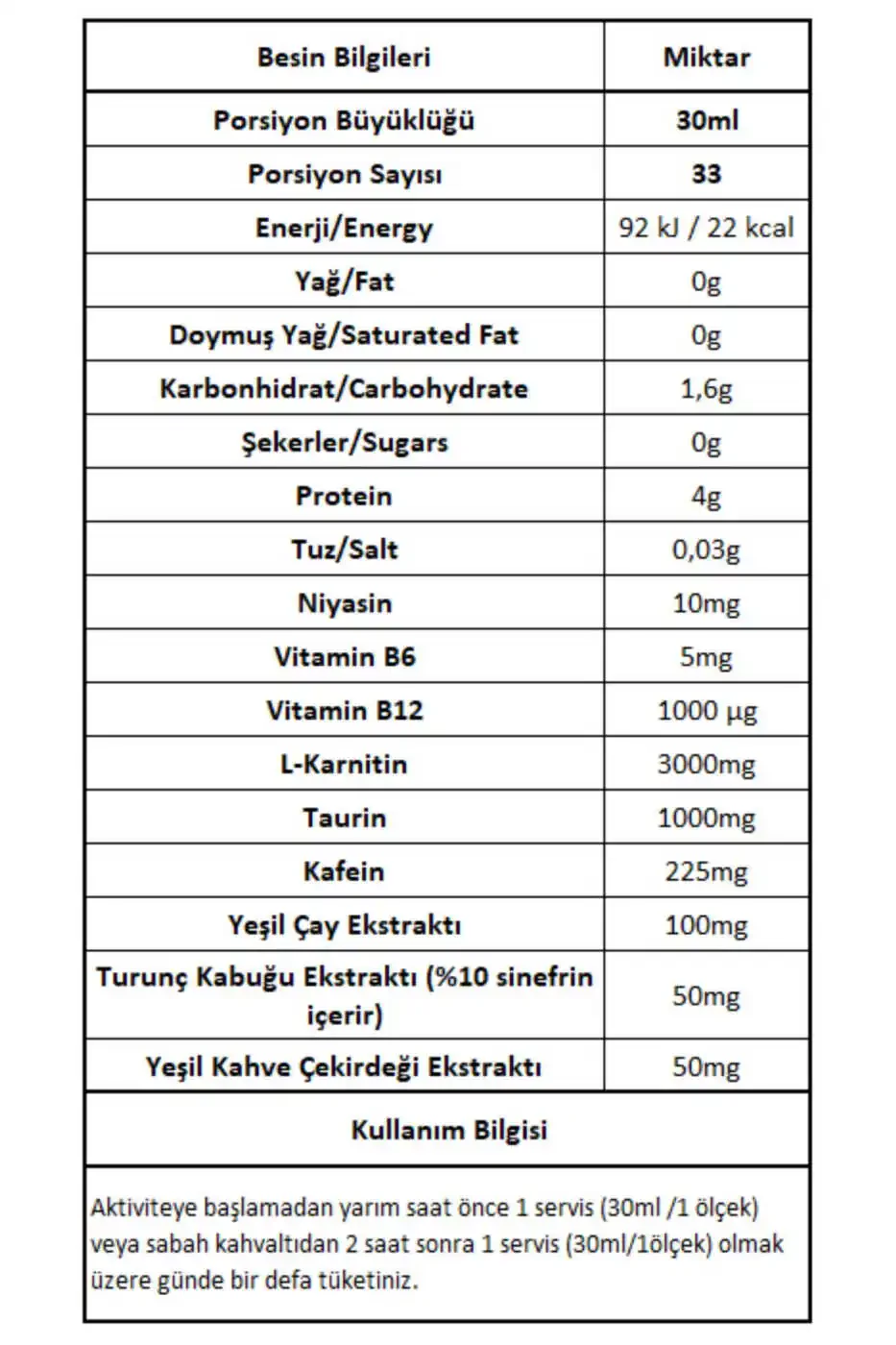Günde 1-2 yemek kaşığı (15-30 ml) su veya meyve suyuyla karıştırılarak tüketilmesi önerilir. Egzersiz öncesi veya sonrası tüketilebilir.