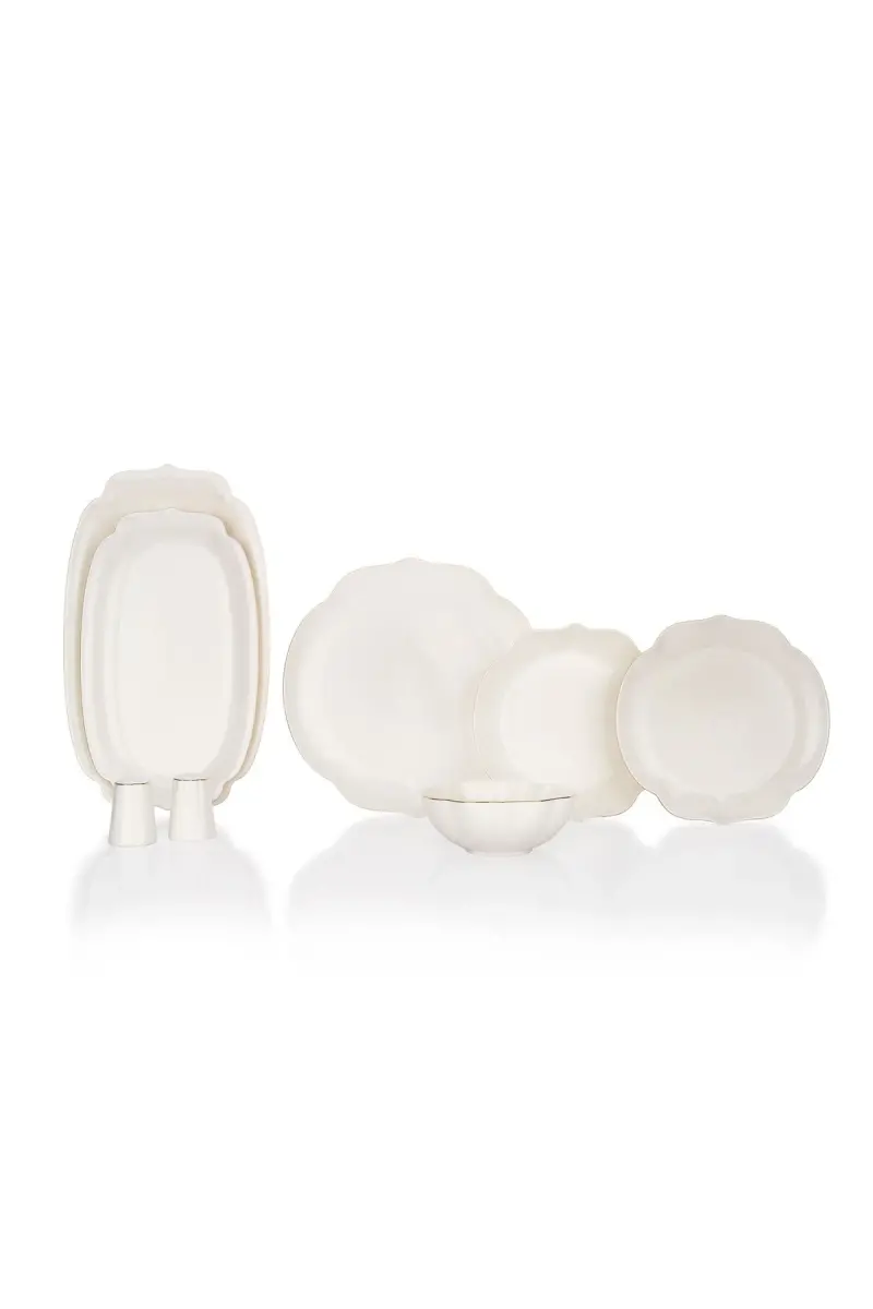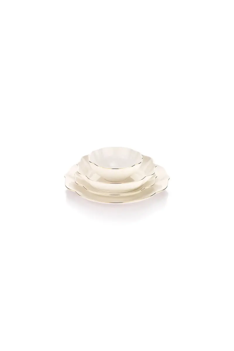 The Lina Bone Dinner Set is a magnificent 56-piece set designed to add a touch of gold elegance to your tables. This set, which offers a stunning look with its elegant and modern design, will turn every meal into a special experience.