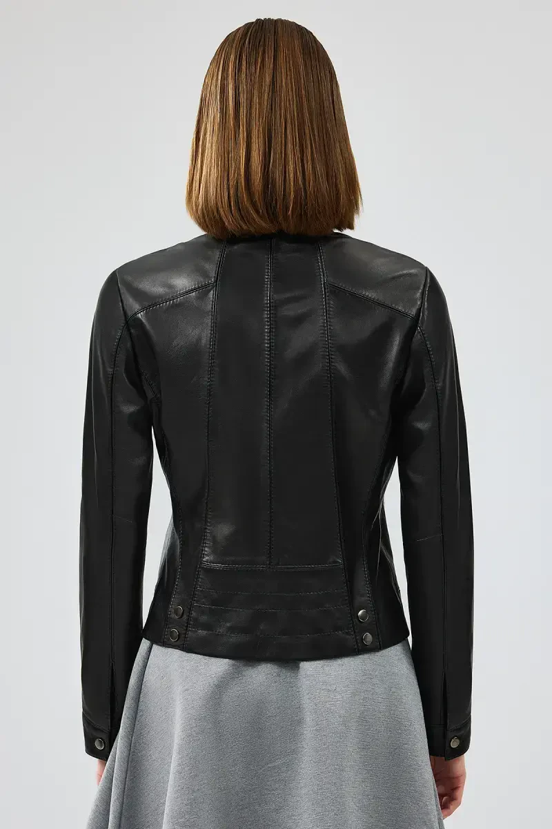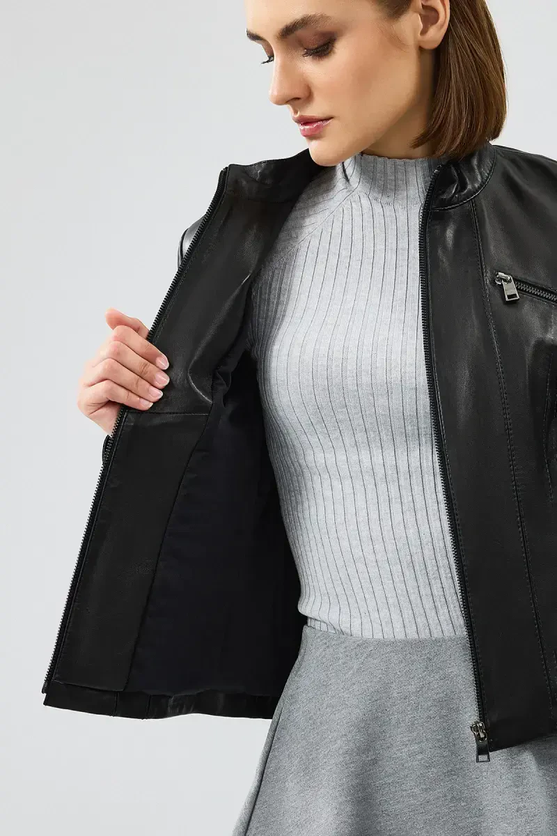 кожаная куртка Linda, женская кожаная куртка, черная кожаная куртка, короткая кожаная куртка, кожаное пальто, женское пальто, стильная куртка, удобная куртка, 24WGD5200U4